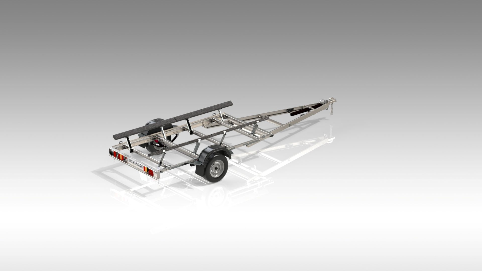- Выдвижное дышло с регулировкой длины для удобного размещения лодки.