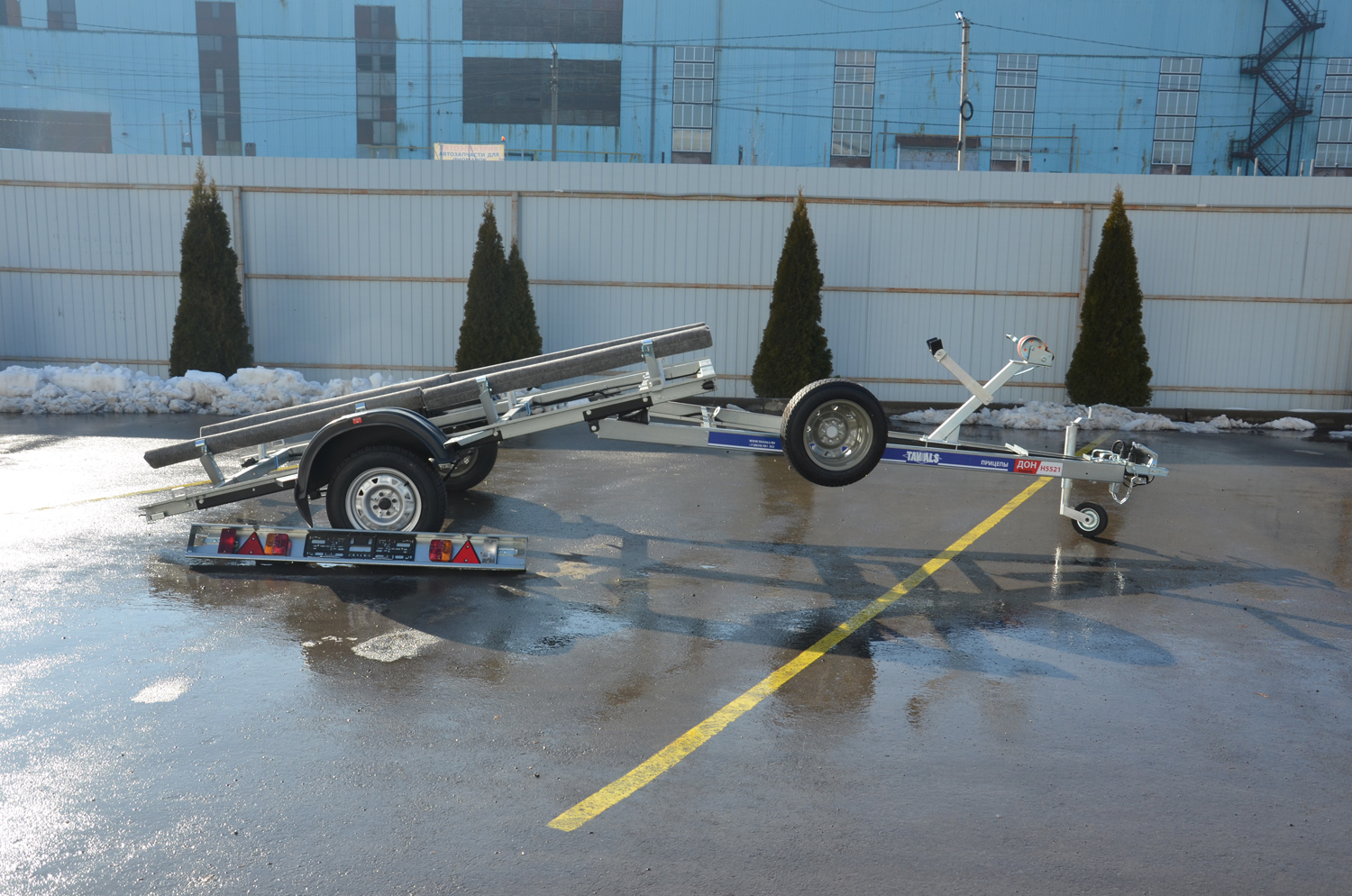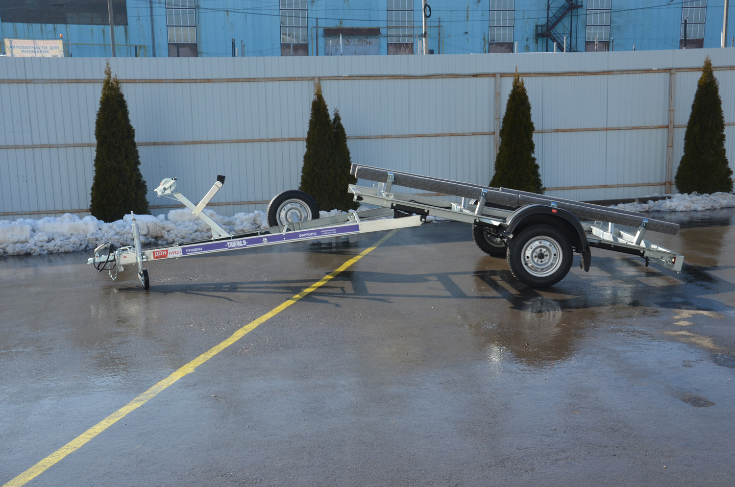 - Длина перевозимого судна: 3800-5500 мм (при установленных ложементах)