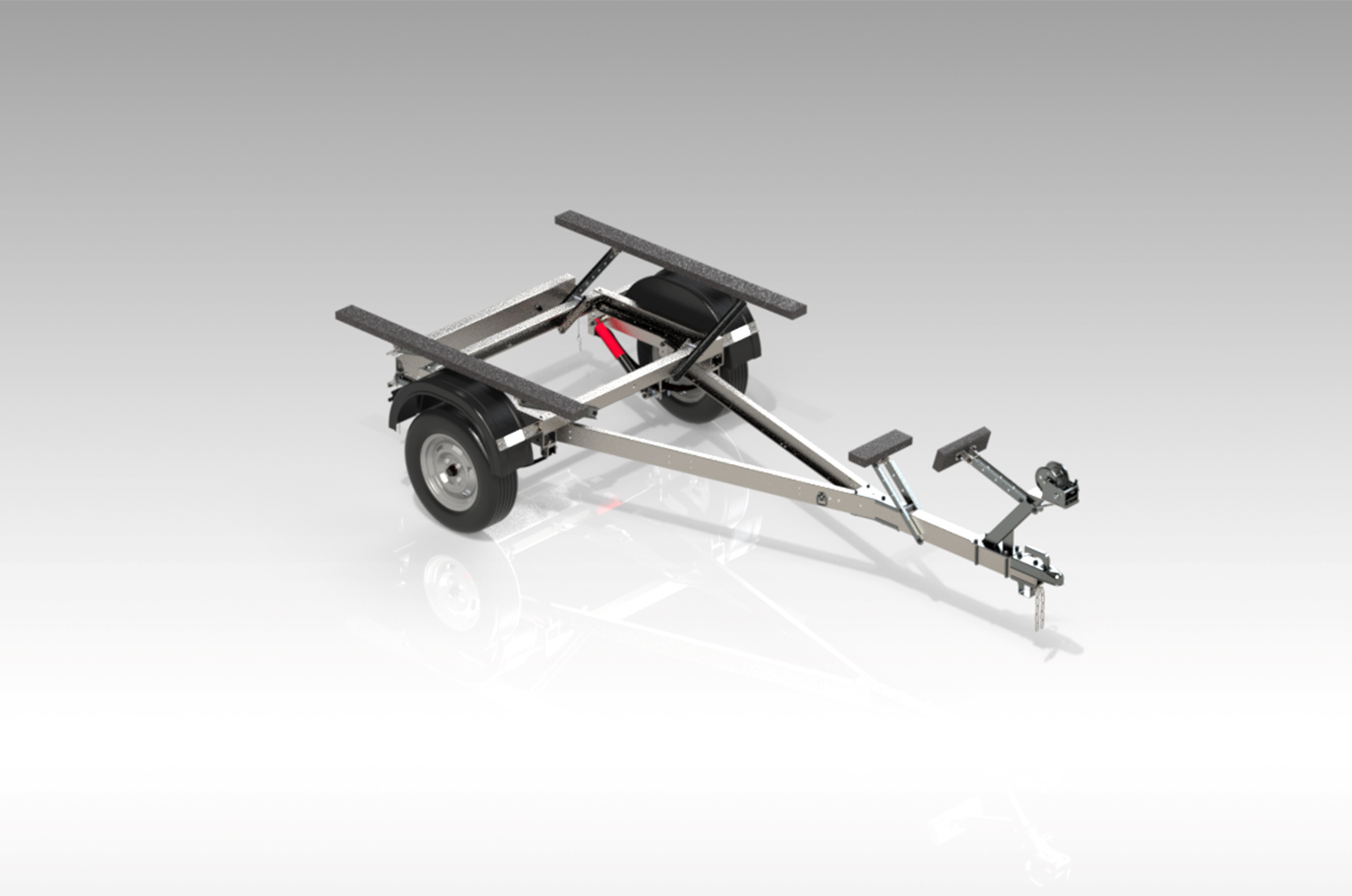 Конструкция ложементов прицепа позволяет адаптировать их под различные формы днищ лодок и гидроциклов. Ложементы можно регулировать по ширине, высоте и углу наклона.