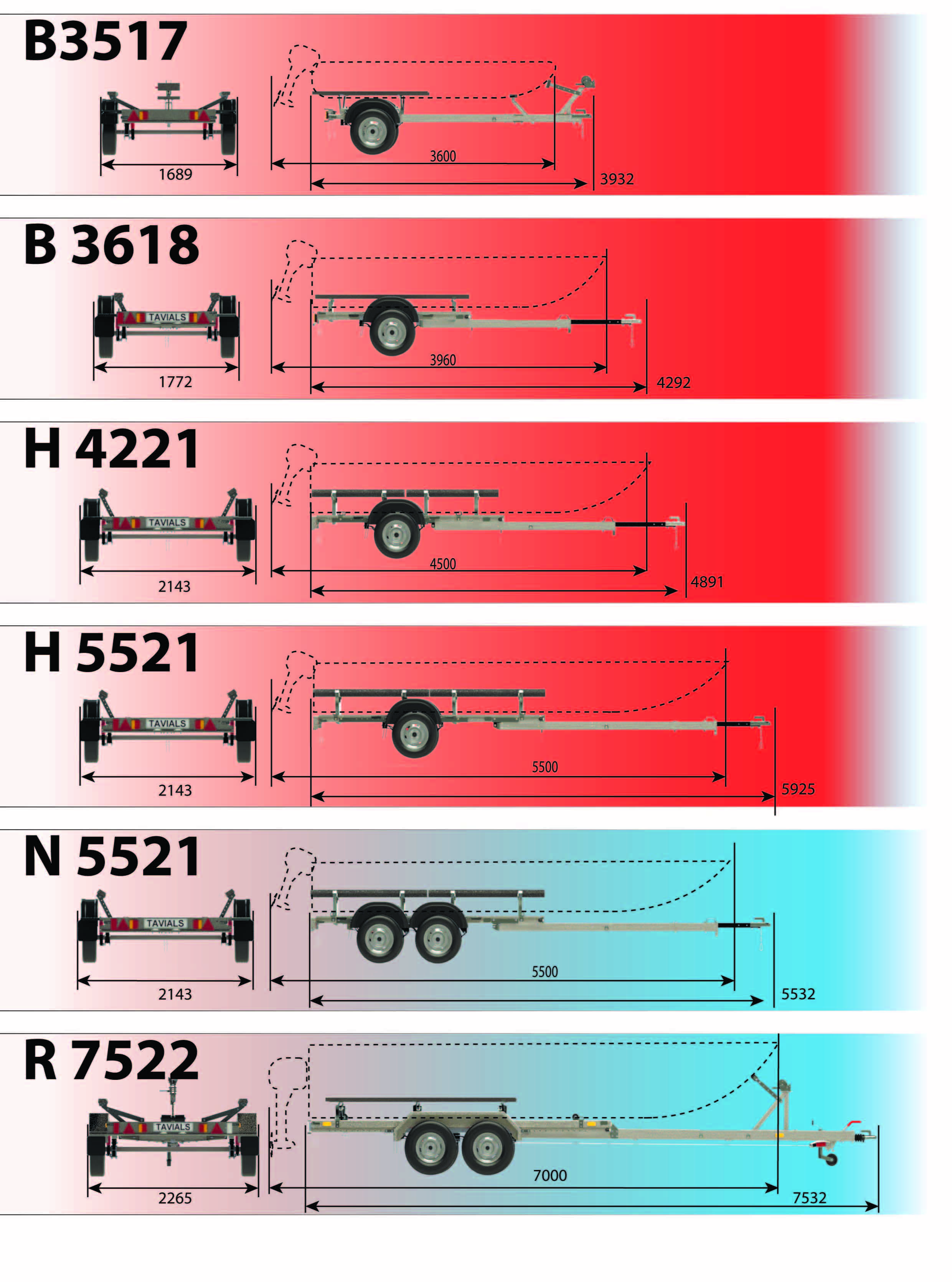 Этот легковой прицеп Tavials ДОН В3517 подходит для перевозки гидроциклов и ПВХ лодок длиной до 3600 мм. Опциональная самосвальная функция значительно облегчает погрузку и выгрузку. Съемная задняя световая панель защищает оптику прицепа от контакта с водой.