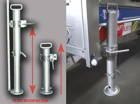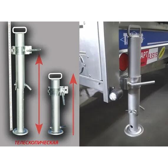 Опорная стойка Tavials D57 — это телескопическая конструкция, обеспечивающая надежную поддержку прицепа при погрузке, разгрузке или стоянке. Благодаря телескопическому механизму стойка легко регулируется по высоте, что позволяет адаптировать ее под различные условия эксплуатации. Изготовленная из прочных материалов, она устойчива к коррозии и долговечна. Комплектуется удобным хомутом для надежного крепления на прицепе. Идеально подходит для повышения устойчивости и безопасности вашего прицепа, особенно на неровных поверхностях или при длительной стоянке.