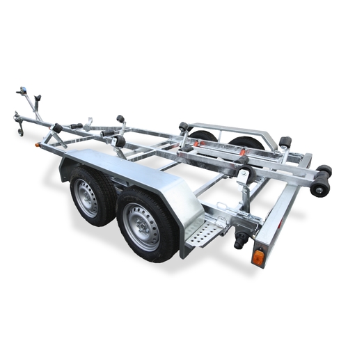 Рама и ось прицепа полностью оцинкованы методом горячего цинкования. Крылья выполнены из оцинкованной стали. Прицеп двухосный, без тормозов. Подвеска колес (R13) на четырех полуэллиптических рессорах с гидравлическими амортизаторами. Направляющие ролики (6 шт.) с регулируемым углом наклона.