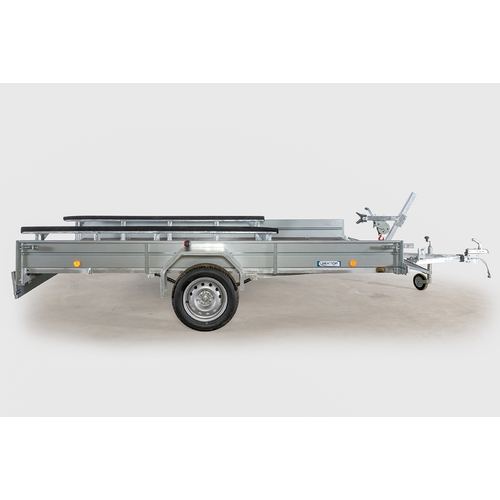 Легковой прицеп ЛАВ 81012С 4.0 предназначен для перевозки квадроцикла, мотоцикла, гидроцикла, снегохода, лодки, лодки ПВХ (надувной лодки) при использовании опции и др. грузов по всем видам дорог, на которых допускается эксплуатация легковых автомобилей. Рама, дышло и ось прицепа полностью оцинкованы методом горячего цинкования. Борта и крылья из оцинкованной стали. Размеры кузова 4000*1800 мм. Не требуется категория "Е"