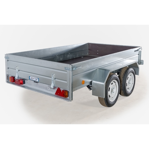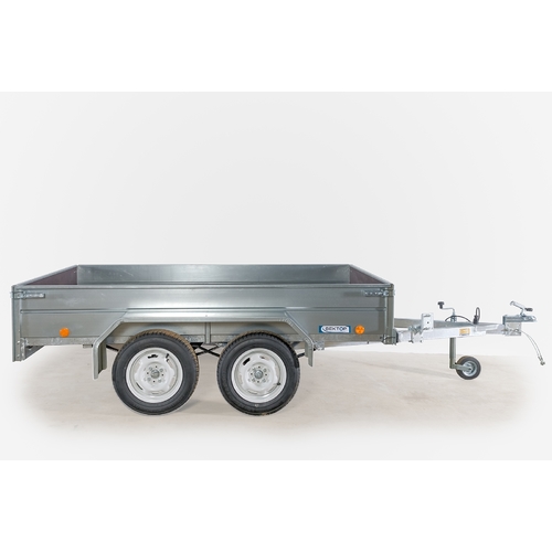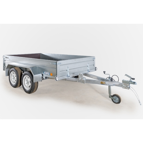 Прицеп оцинкованный методом горячего цинкования. Техническая характеристика: Прицеп двухосный, без тормозов. Передний и задний борта съемные. Кузов опрокидывается. Днище - ламинированная фанера. Дышло -v-образное. На прицепе установлена зависимая подвеска колес на двух полуэллиптических рессорах с гидравлическими амортизаторами. Каркас с тентом - дополнительная комплектация. Каркас выполнен из металлического профиля. Стандартная комплектация: автоприцеп, ПТС, опорное колесо.