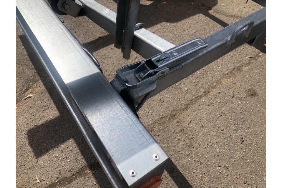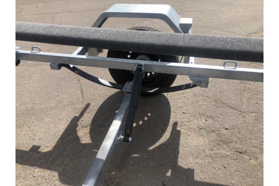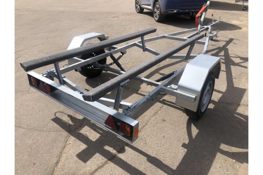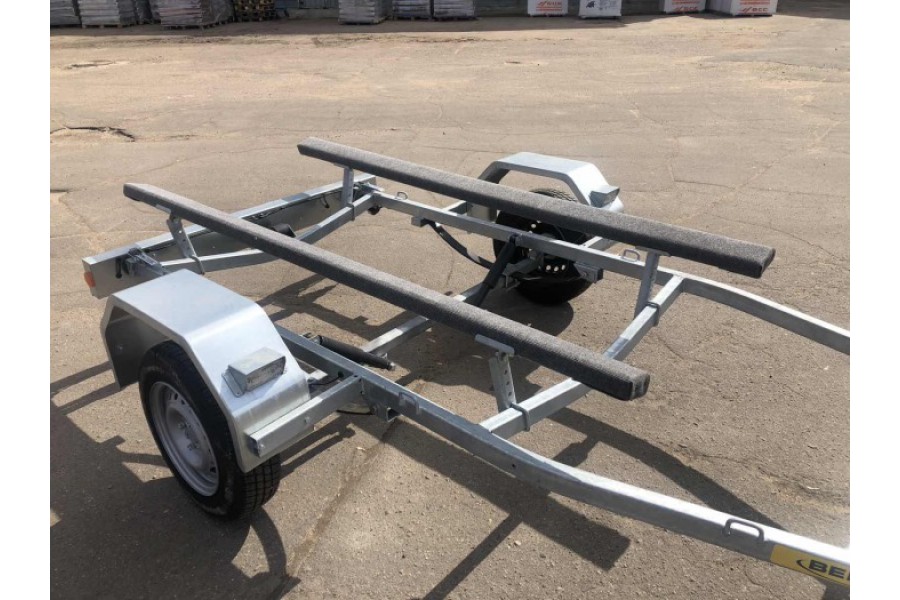 Рама и ось прицепа полностью оцинкованы методом горячего цинкования. Крылья выполнены из оцинкованной стали. Прицеп одноосный, без тормозов. Подвеска колес (R13) на двух полуэллиптических рессорах с гидравлическими амортизаторами. Ложементы, обтянутые ковролином, с регулируемым углом наклона.