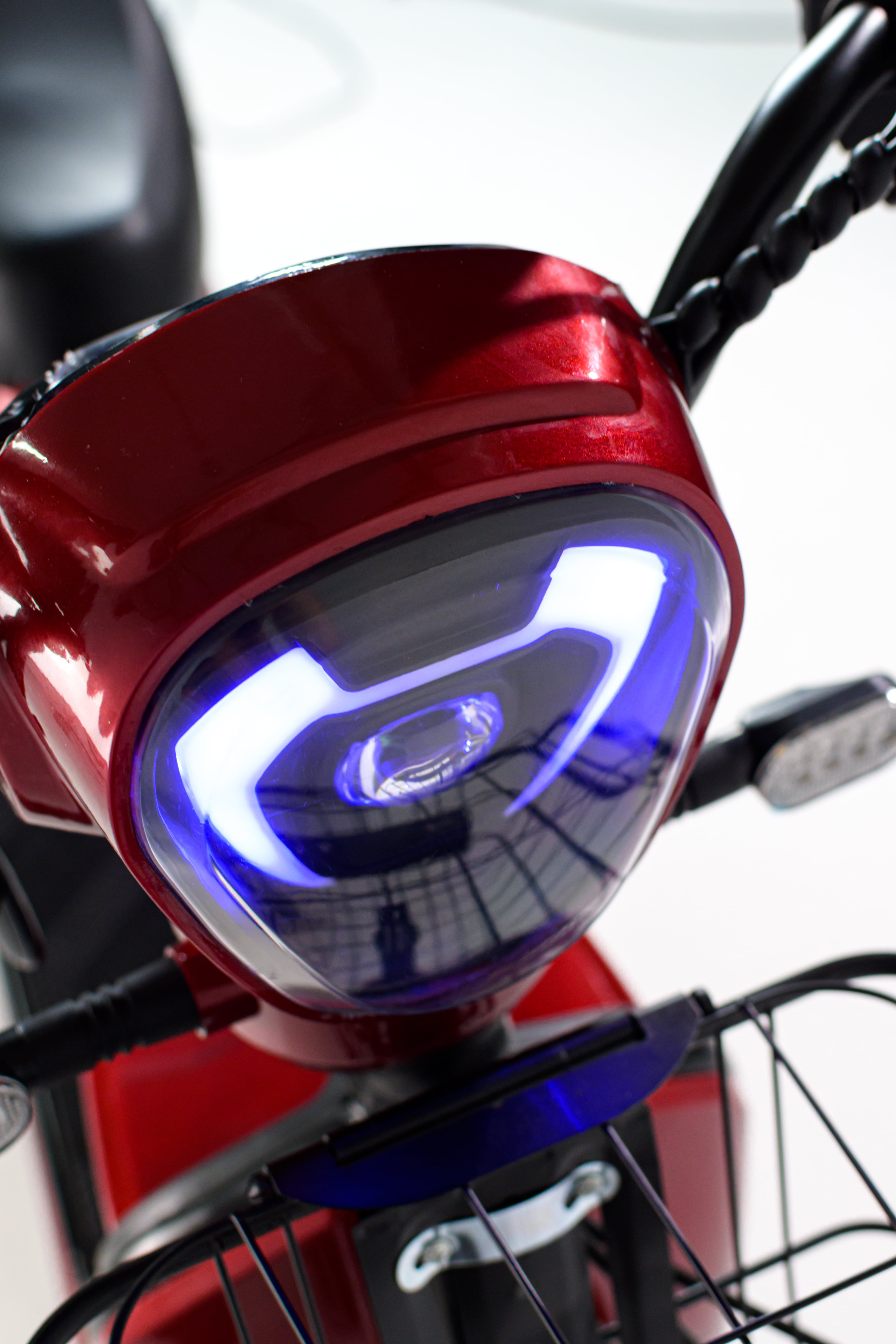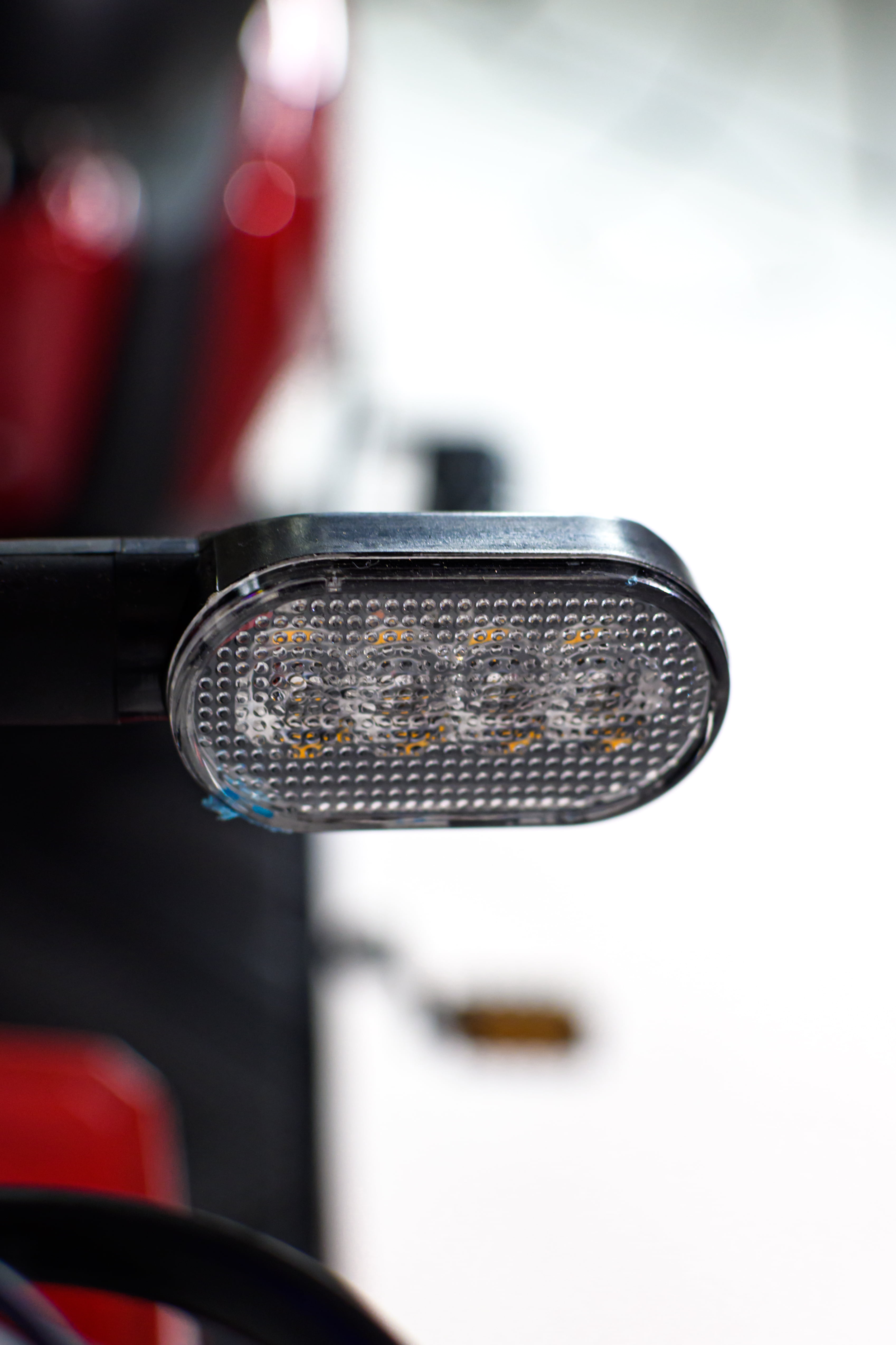 - Большая передняя светодиодная фара, поворотники и задний стоп-сигнал для безопасности передвижения
