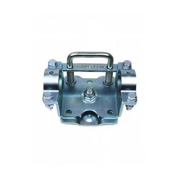 Поворотный усиленный хомут PREMIUM предназначен для крепления опорного колеса или опорной стойки диаметром 48 мм к дышлу прицепа. Конструкция обеспечивает удобное переключение опорного элемента между рабочим и транспортным положением.
