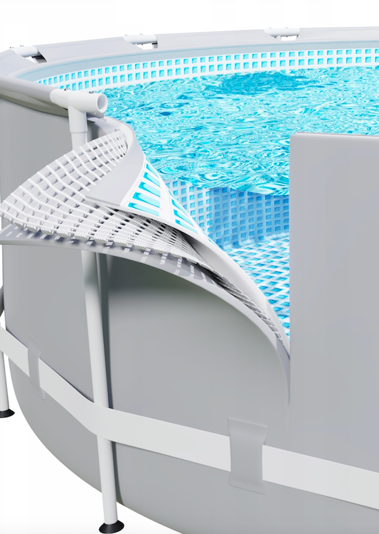 Чаша для каркасного бассейна Intex Prism Frame 12228 выполнена по технологии SUPER-TOUGH из ПВХ. Это плотный армированный материал из трех спаенных слоев: два слоя плотного винила и сетка из полиэстра. Такое сочетание наделяет материал огромным запасом прочности. Толщина стенок полотна - 0,58 мм.