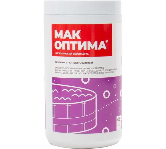 PH-минус гранулированный 1,5 кг. МАК ОПТИМА - средство для понижения уровня pH-минус воды в бассейне в гранулах.
