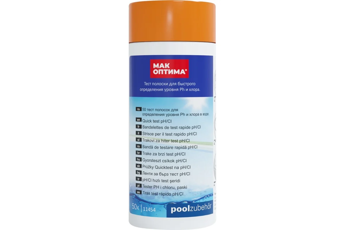 11454 MAK ОПТИМА. Баланс. Тестер для быстрого определения уровня РН и свободного хлора (50 тест полосок)