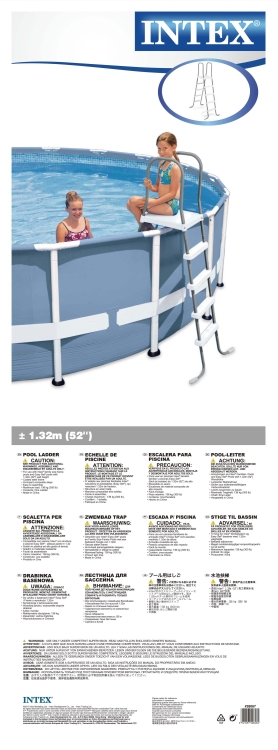 Лестница с площадкой для каркасных и надувных бассейнов Intex с высотой борта до 132 см. Легко и быстро устанавливается, имеет широкий угол между сторонами, достаточный для того чтобы не касаться стенок бассейна и в тоже время быть удобной в использовании.