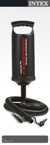 Насос ручной 36 см отличается от предыдущей версии только размером. Если вам неудобно пользоваться маленькой моделью, смело берите этот прибор. Все функции – аналогичны. Вы можете подкачать им плавательный круг, надувную игрушку, матрас и даже лодку. Просто выберите подходящую насадку, подсоедините ее к нужному изделию и качайте.