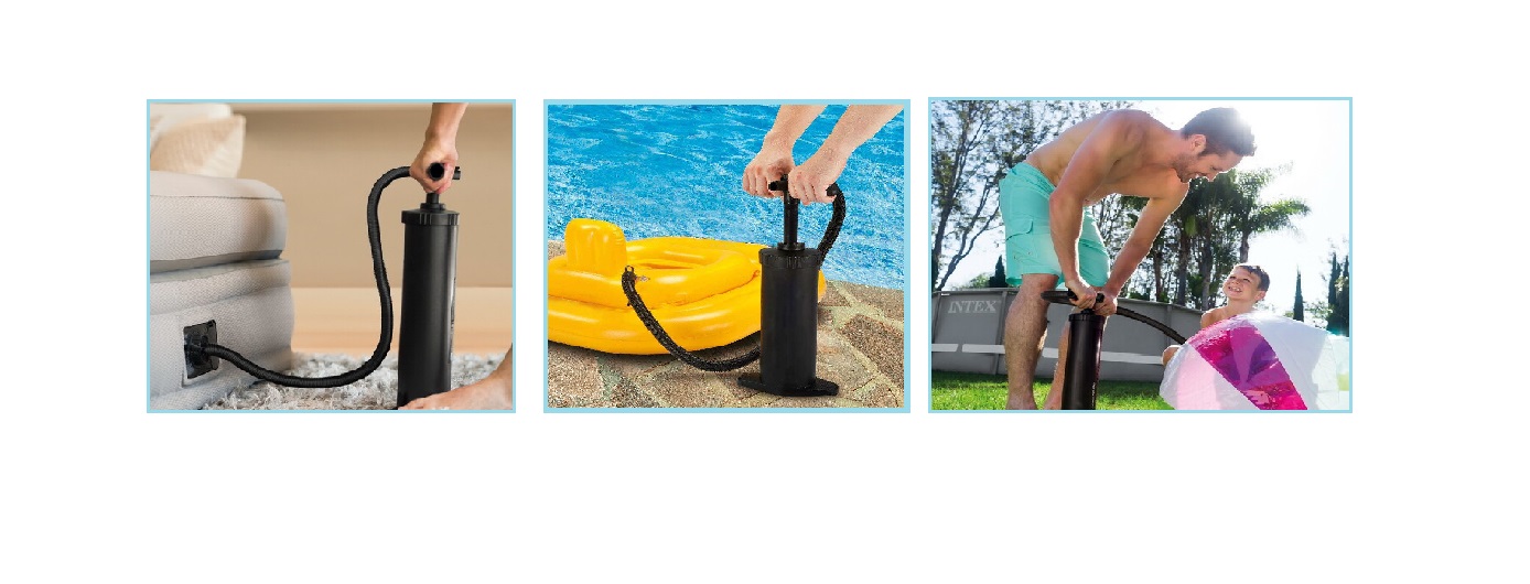 Портативный и высокопроизводительный насос ручного накачивания с воздушной камерой большого объема, включает в себя воздушный гофрированный шланг с 4-мя соединительными соплами малого, среднего и большого диаметра позволяют этому насосу накачивать/Надувные матрасы, плоты для бассейнов, пляжные мячи,Надувные лодки, а также имеет игольчатые клапана, которые можно найти на футбольных и баскетбольных мячах.
