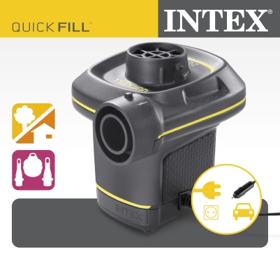 Насос электрический 220V + 12V Intex 66634 – поможет Вам за считанные минуты накачать либо сдуть любое надувное изделие, такое как: матрас, бассейн, кровать, лодка и прочее. Достаточно вставить насос в отверстие для надува и включить его. Имеет компактный дизайн и легкий вес, благодаря чему очень удобен и легок в эксплуатации. Насос работает как от домашней розетки, так и от автомобильного прикуривателя.