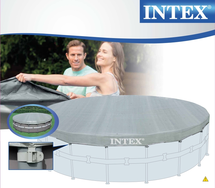 Тент на каркасный бассейн круглой формы INTEX, веревка для крепления тента, фирменная упаковка.