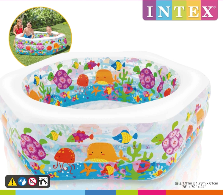 56493 Бассейн надувной Intex Морской риф, 191 х 178 х 61 см, от 6 лет, микс