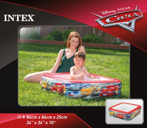 57101 Бассейн надувной Intex Тачки, прямоугольный, 85 х 85 х 23 см, 1-3 лет
