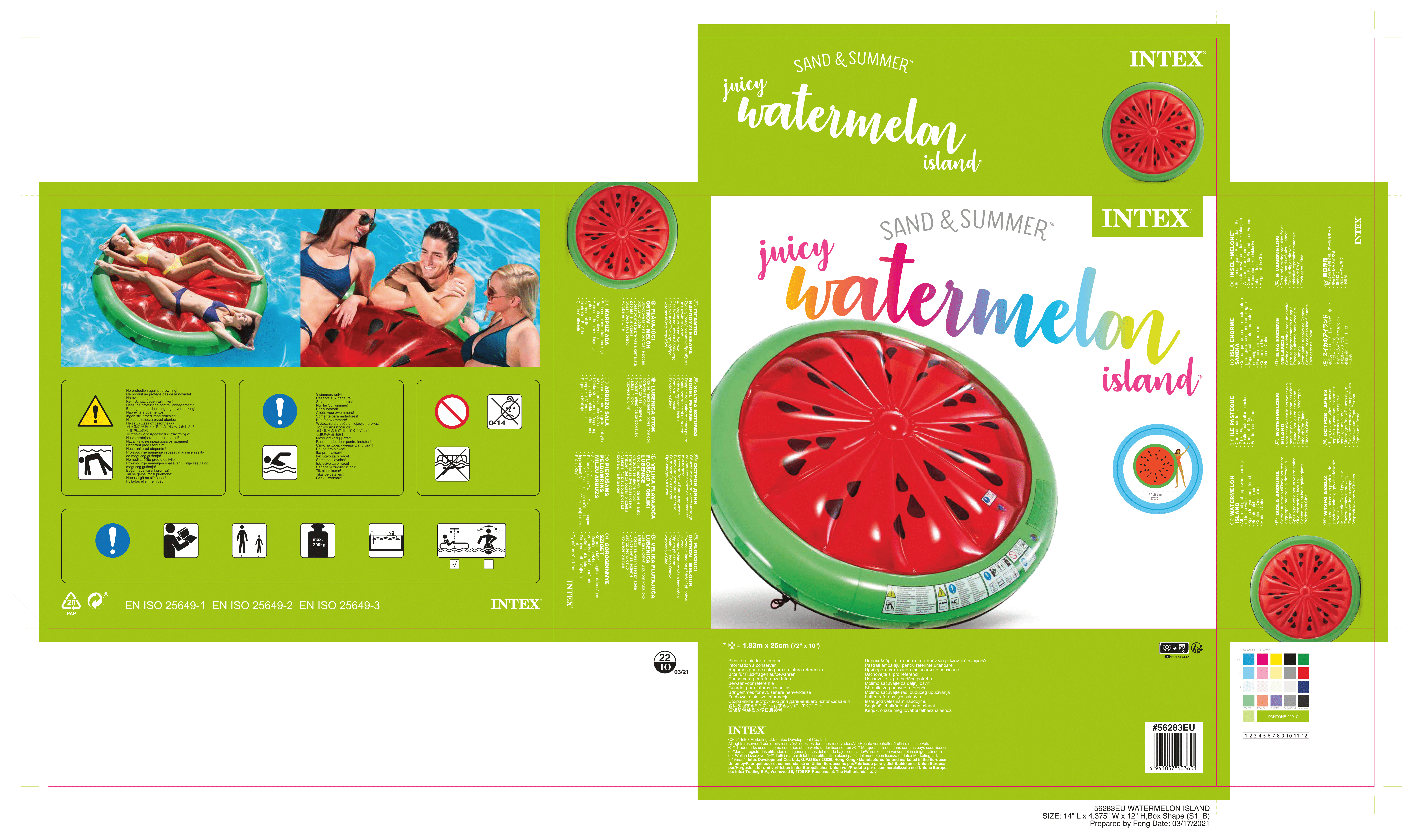 56283 Плот для плавания Intex Арбуз 183 х 23 см