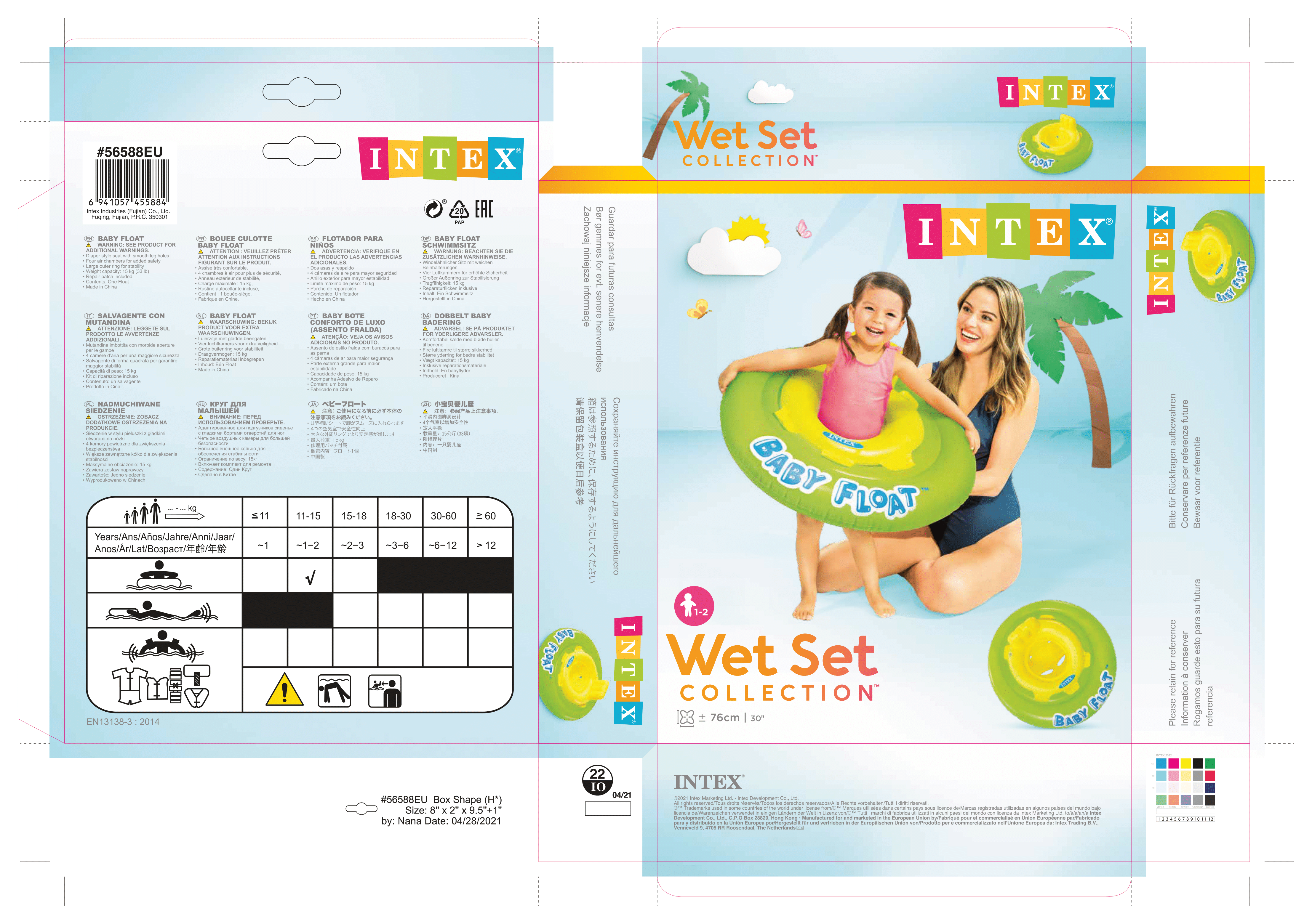 56588 Круг для плавания с сиденьем Intex Baby float, 76 см, от 1-2 лет