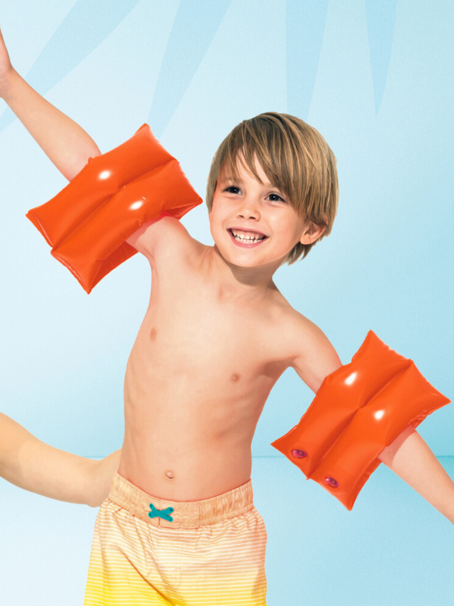 Эта модель нарукавников позволит детям не боятся воды, а весело проводить в ней время. Они надежно поддерживают ребенка в воде, имеют 2 камеры и специальные клапаны, предотвращающие спускание воздуха. Материал – винил, очень приятный на ощупь, не доставляющий дискомфорт телу ребенка. Благодаря своему весу и компактности, такие нарукавники всегда можно брать с собой на отдых. Благодаря универсальному цвету, подходят как мальчикам, так и девочкам.