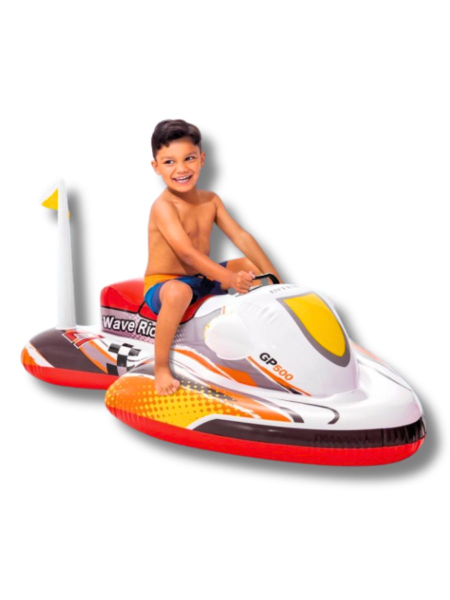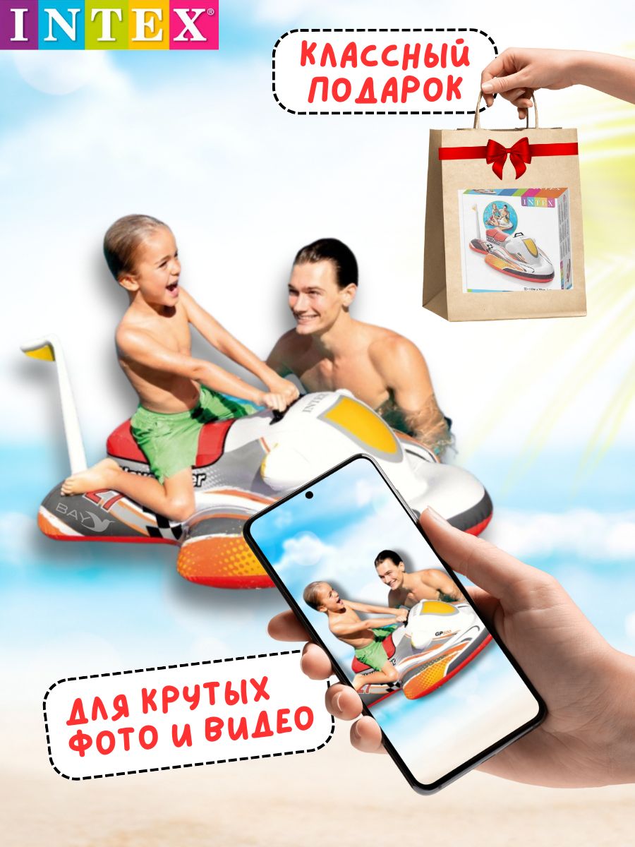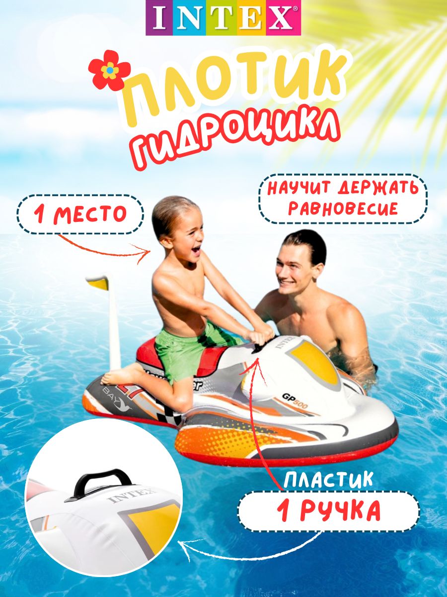 Великолепно исполненная в стиле гидроциклов игрушка не оставит равнодушным ни одного ребенка. Ведь теперь у ребенка появилась настоящая возможность прокатиться на гидроцикле! Эта игрушка порадует ребенка во время водных игр. Ее легко надувать и спускать, она не занимает много места, но непременно оставит море положительных впечатлений. Рекомендовано для детей старше 3 лет. Особенности конструкцииширокое основание для придания: большая устойчивость, пластиковая ручка.