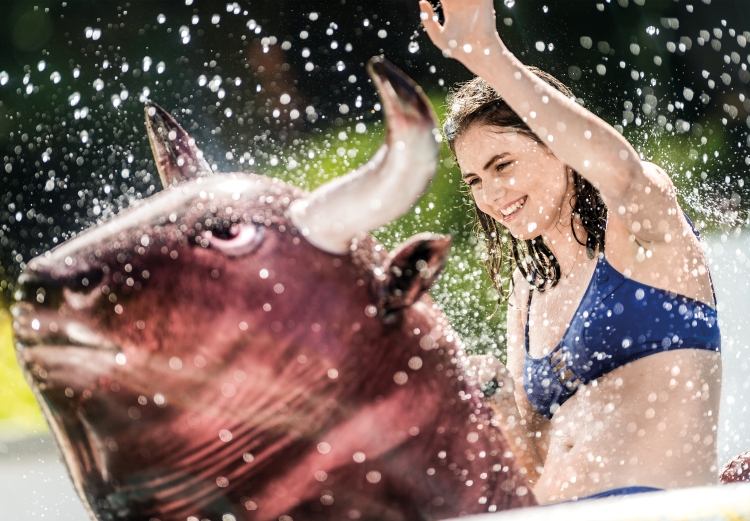Надувной аттракцион Буйвол с реалистичным принтом для весёлых игр на воде. Размер 239 х 196 х 81 см. Предусмотрены ручки для удержания.