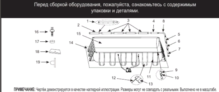 В комплект заводской поставки каркасного бассейна Intex Prism Frame Rectangular Pool 26788 входят: