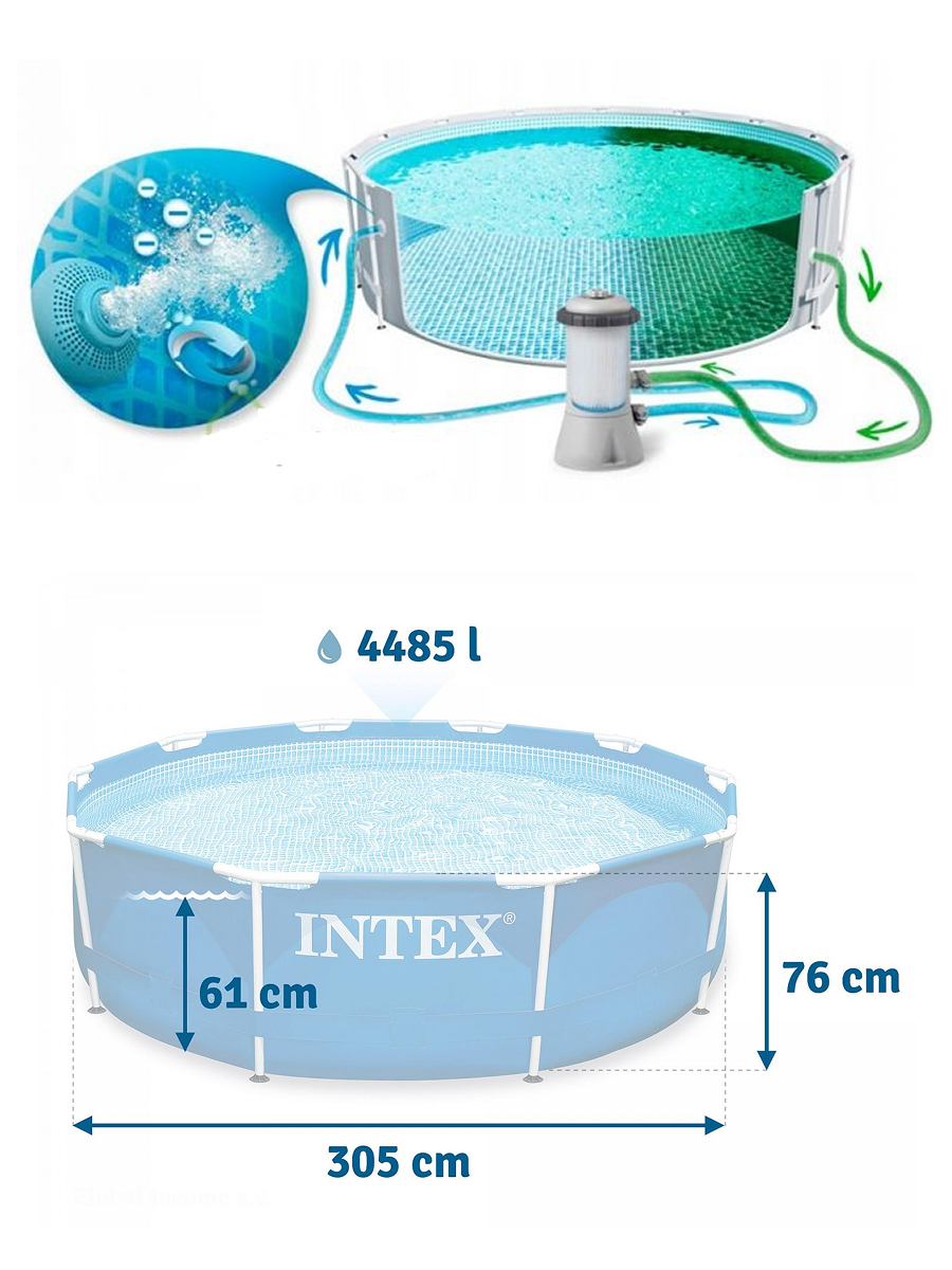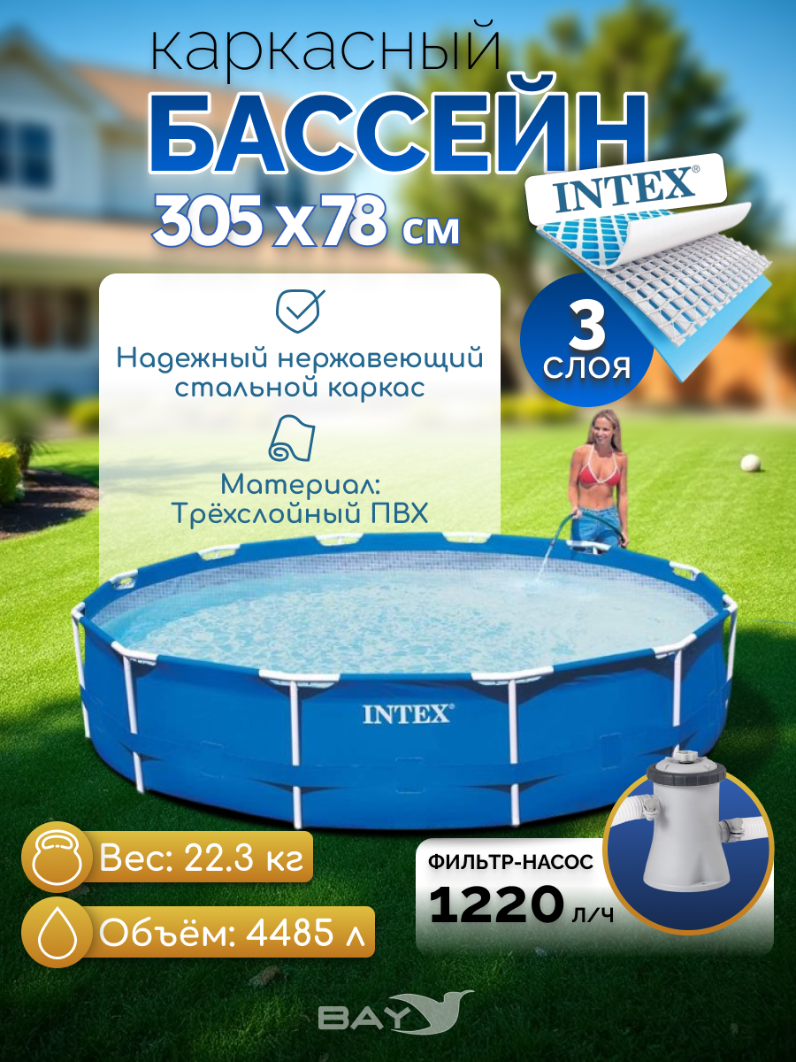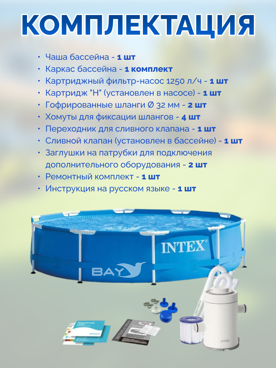 28202 Каркасный бассейн Intex 305 x 76 см с фильтр-насосом 1250 л/ч