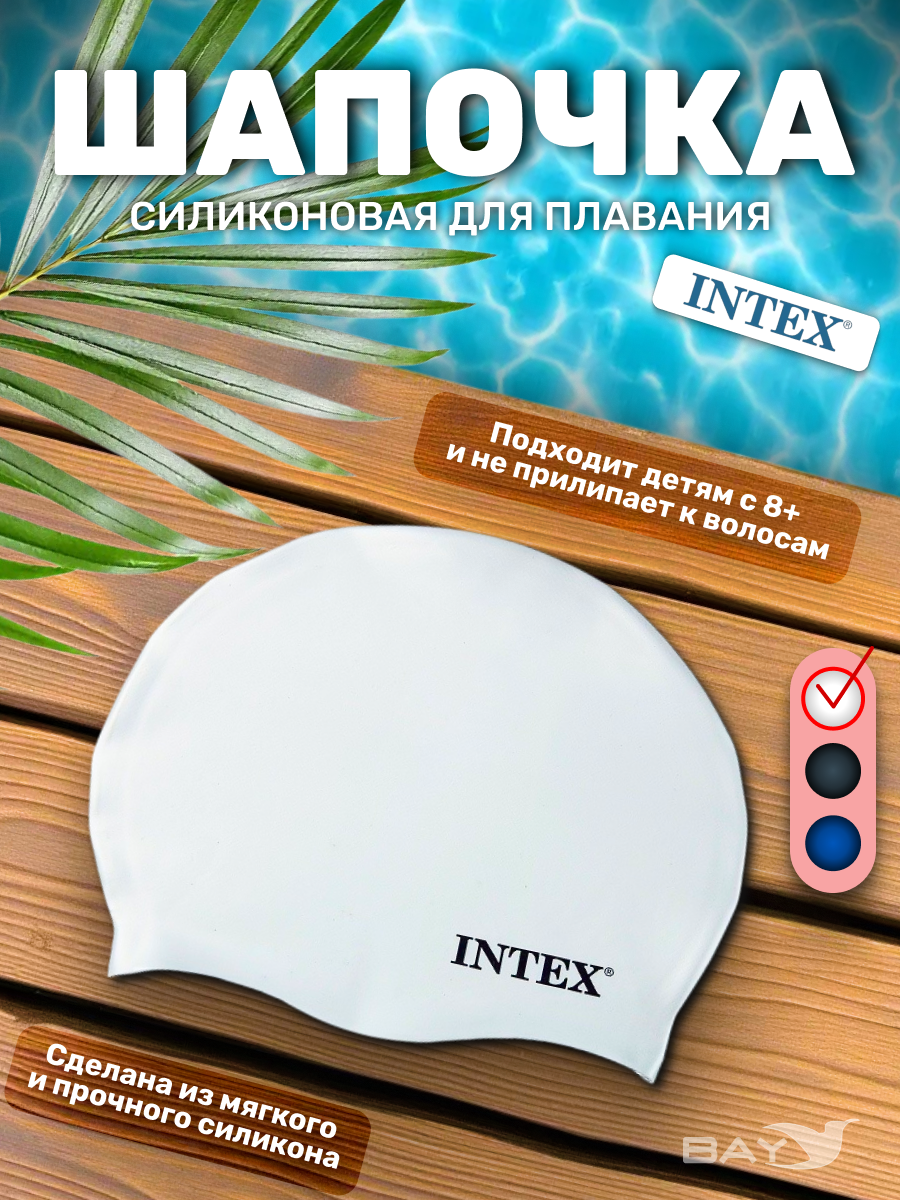 Шапочка для плавания Intex 55992 сделана из мягкого и прочного силикона.
