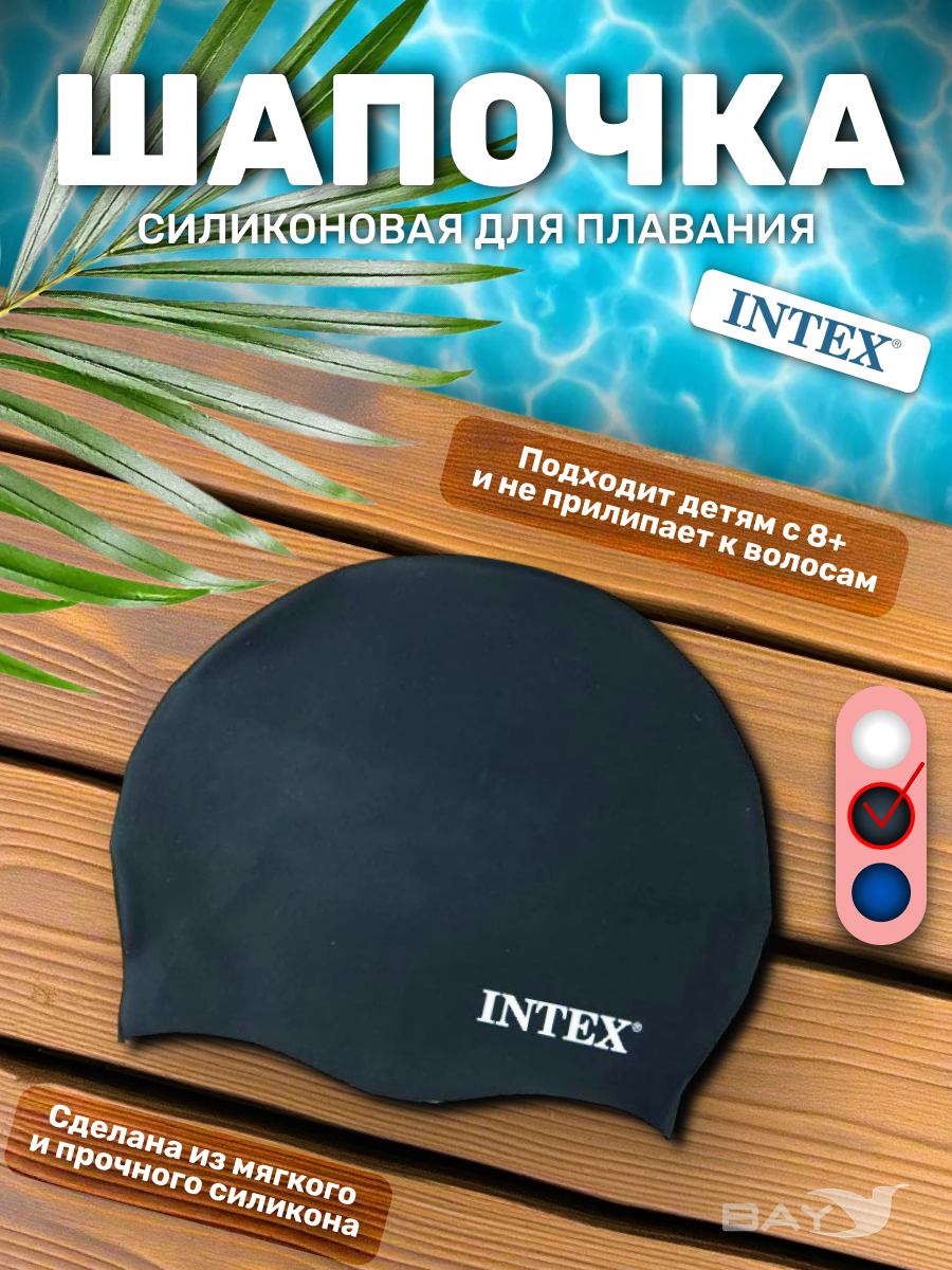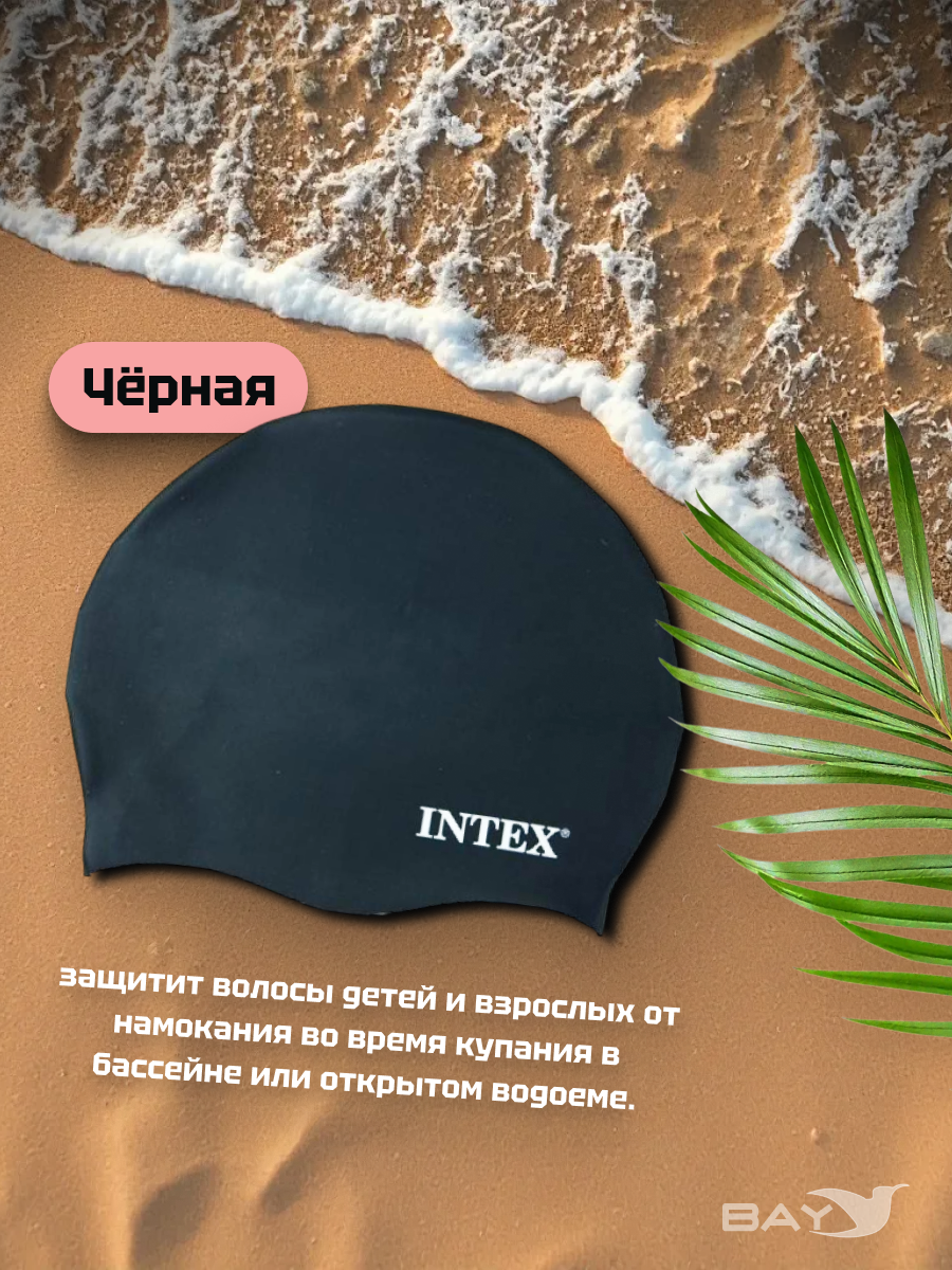55992 Силиконовая шапочка для плавания Intex, Цвет: черный, фото