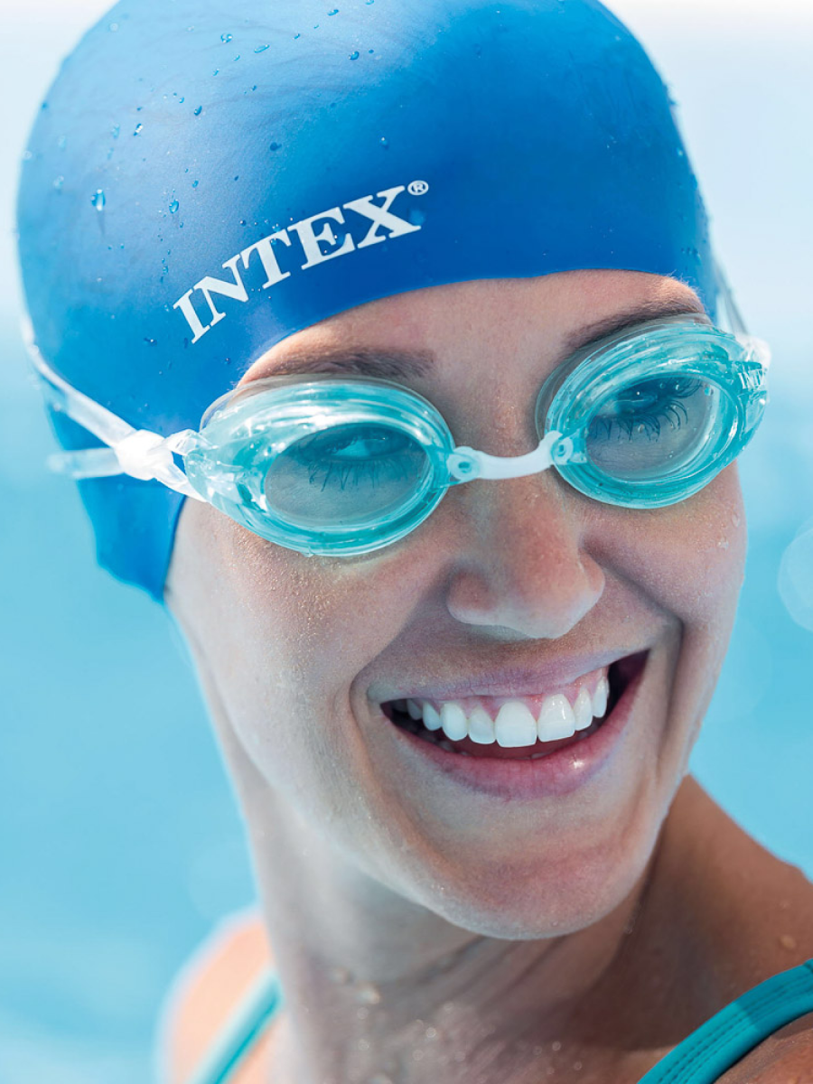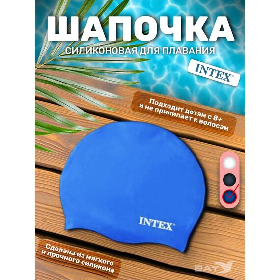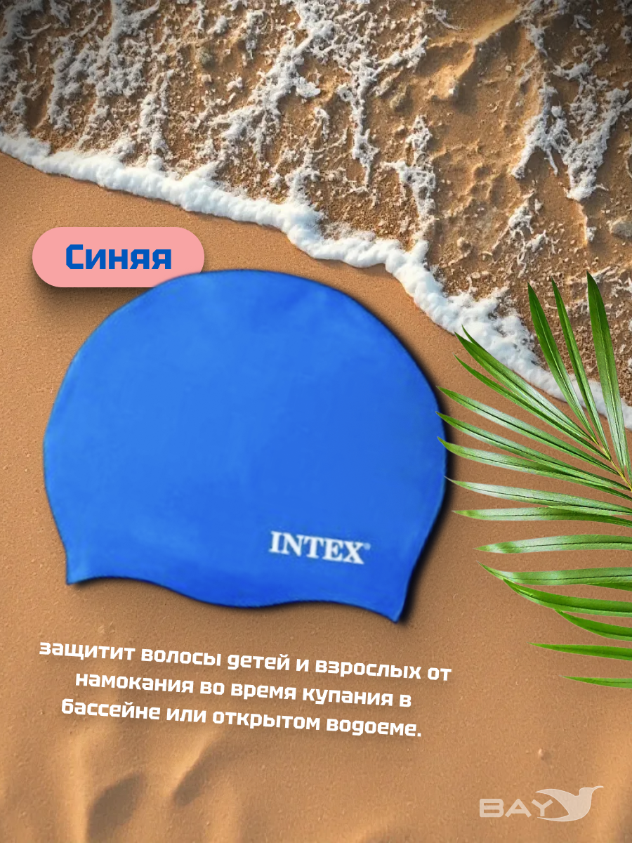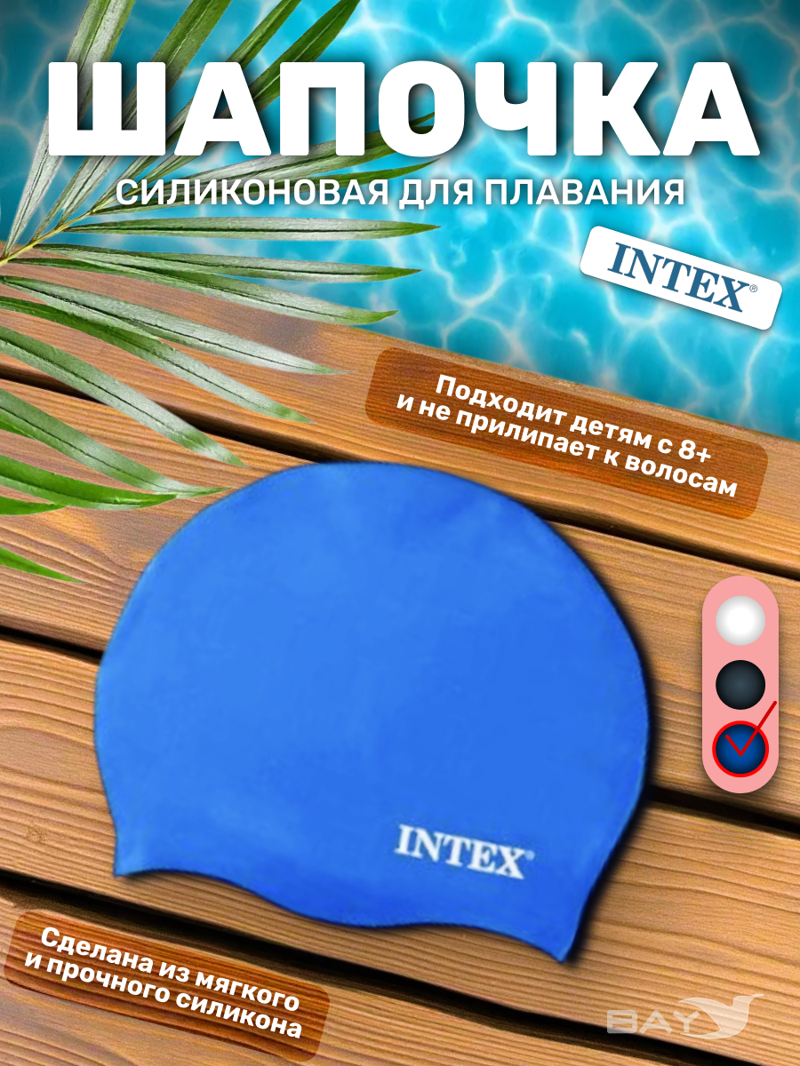 55992 Силиконовая шапочка для плавания Intex, Цвет: синий, фото