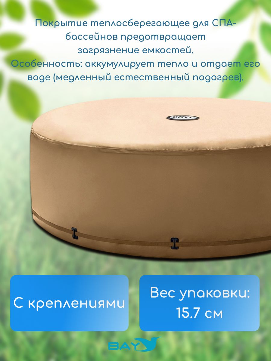 тент-чехол круглой формы для надувных джакузи (СПА) INTEX 28523 серии Energy Efficient Spa Cover, веревка для крепления тента, фирменная упаковка.