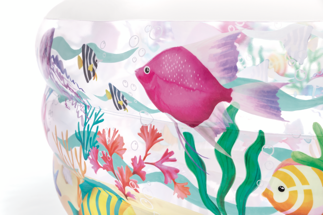 Великолепный детский надувной бассейн сочетает в себе функции бассейна и манежа. Бассейн имеет комфортный надувной пол и мягкие надувные бортики, что способствует также повышению уровня безопасности для ребенка. Бассейн разрисован рыбками и другими морскими существами. Яркий окрас и форма бассейна станут оригинальным украшением вашей дачного участка, не оставив равнодушными вас и ваших деток.