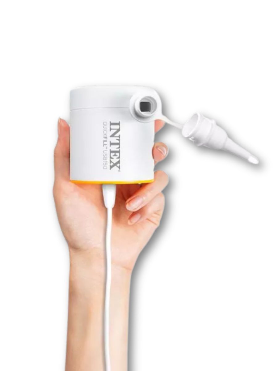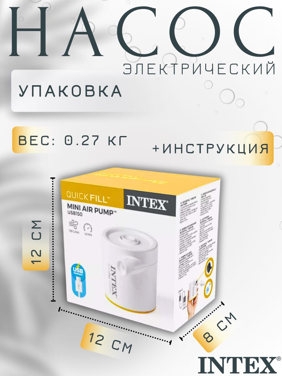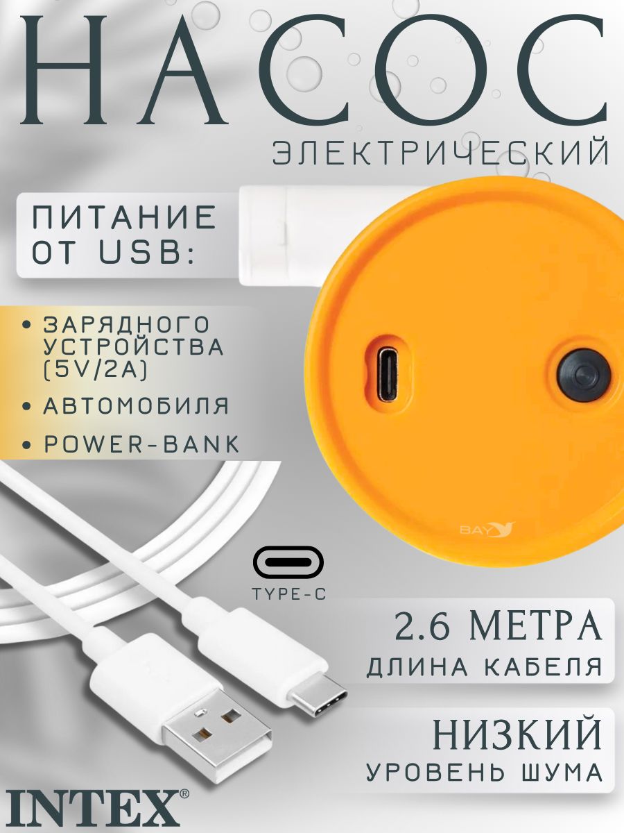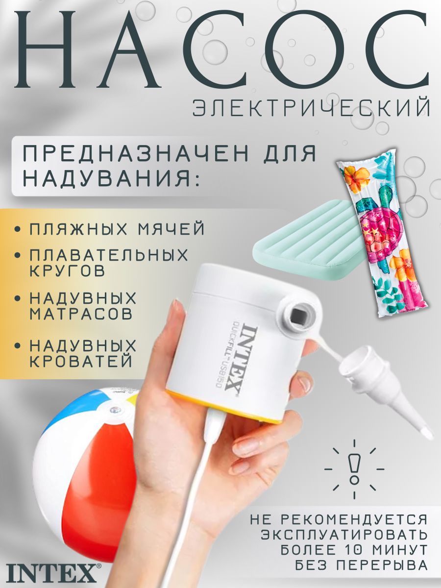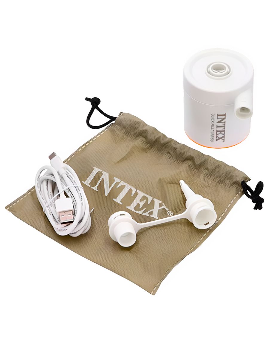 Электрический насос очень компактный и прост в использовании, работает от USB (можно подключить как к розетки, так и к powerbank), две сменные насадки, которые делают его пригодным для накачки воздухом за считанные минуты небольших надувных изделий производства INTEX, а также быстро сдует по необходимости. Прибор будет великолепным помощником во время путешествий или поездок на природу, ведь его можно подключить к powerbank. Устройство длительное время будет радовать Вас своей выгодой и удобством в использовании.