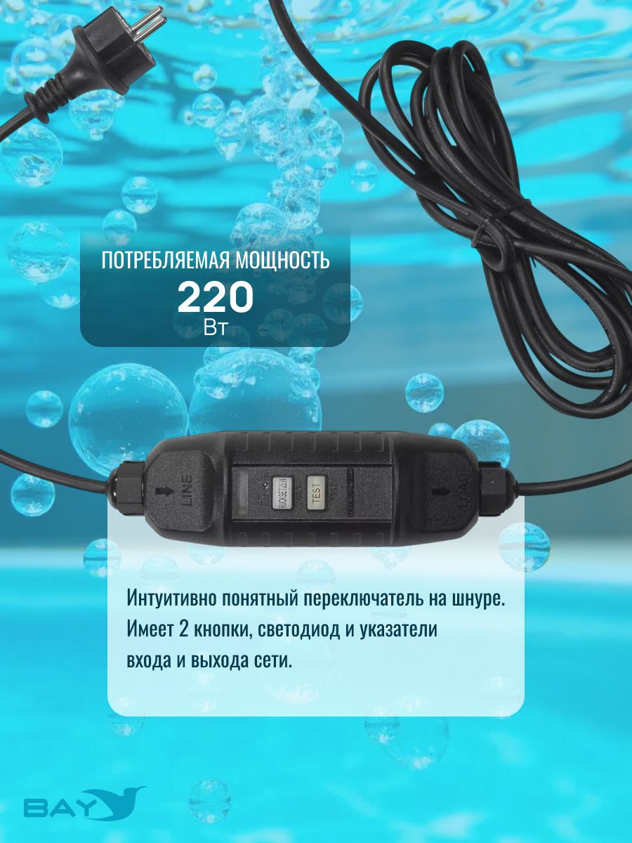 - Мощный двигатель подходит для бассейнов до 60 000 литров.