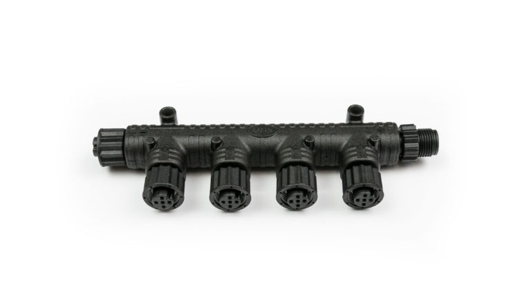 Разъем N2K, 4 WAY (на 4 гнезда) для сети NMEA 2000 (000-12612-001) позволяет подключить до 4-х дополнительных сетевых устройств к сети NMEA 2000 с минимальным уровнем потерь.