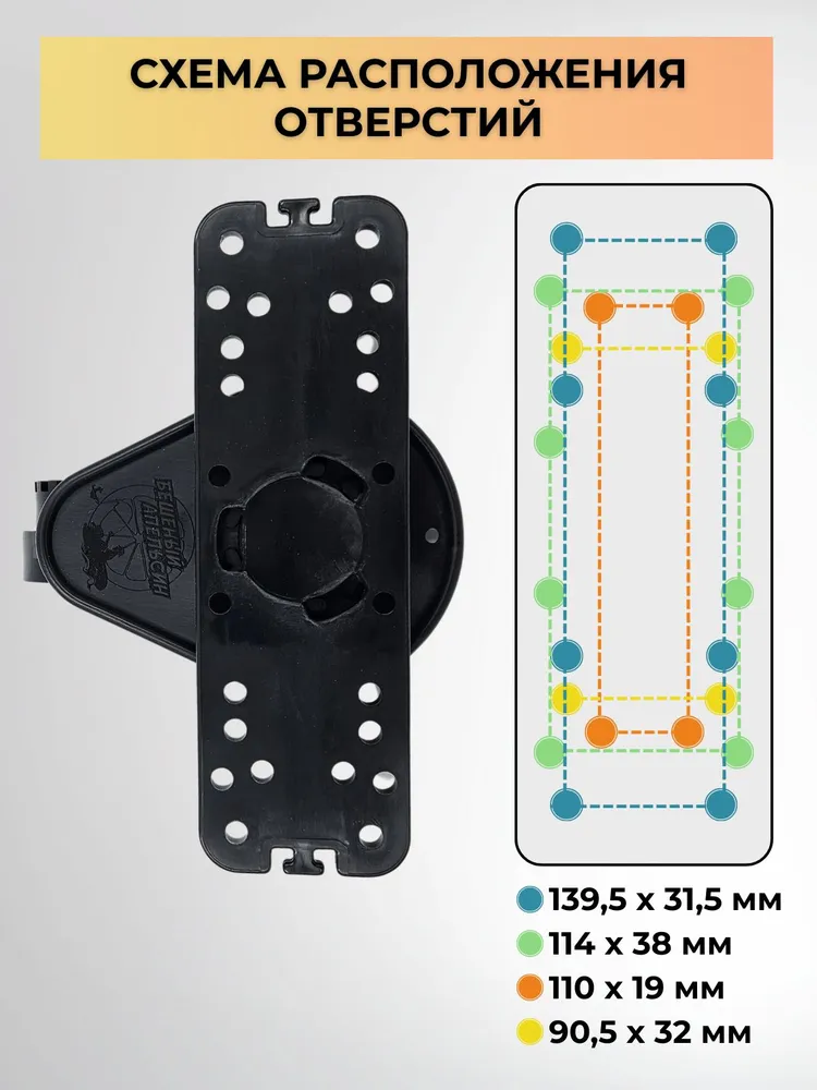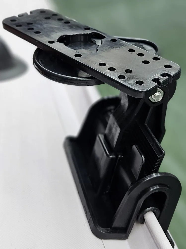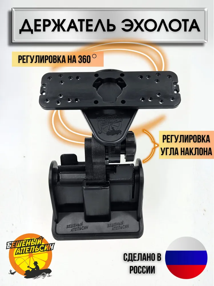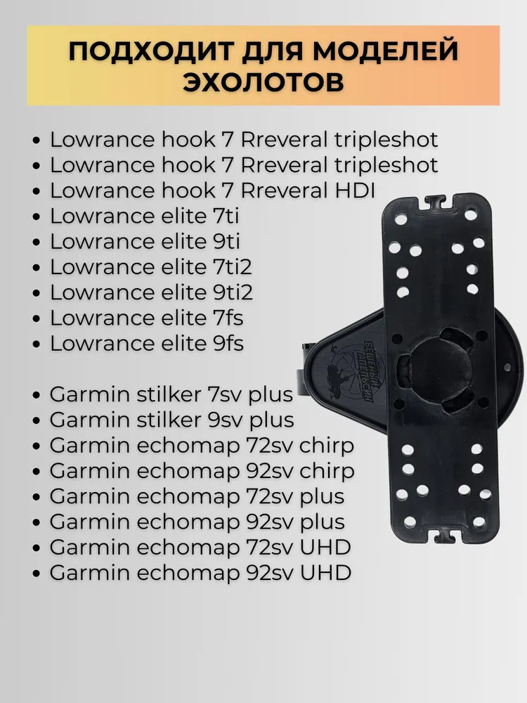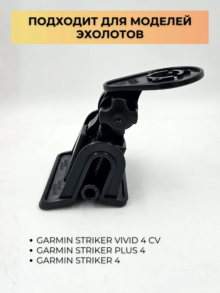 Верхняя часть крепления совместима с большинством популярных моделей эхолотов Garmin и Lowrance. Дополнительно предусмотрена регулировка в горизонтальной плоскости.