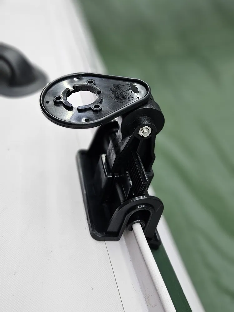 Для ускорения установки и снятия держателя ликпаз можно не демонтировать с ликтроса. При транспортировке лодки в сложенном состоянии изделие не повреждает баллон и не ломается.