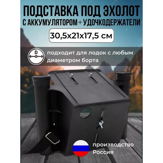 Подставка под эхолот с удокодержателями - это удобный и функциональный аксессуар, предназначенный для установки эхолота и удочек на борту лодки с любым диаметром баллонов. Эта подставка с отделом для аккумулятора обеспечивает удобство и организацию во время рыбалки, позволяя вам максимально сосредоточиться на ловле рыбы. Подставка изготовлена из прочного и надежного ударопрочного пластика и нержавеющей фурнитуры. Она способна выдерживать вибрации и удары, что делает ее идеальным выбором для использования на воде. Материал обладает хорошей стойкостью к воздействию воды и солнечных лучей, сохраняя свою форму и целостность на протяжении долгого времени. Устанавливается на ликтрос и является альтернативой столику для эхолота. Это обеспечивает стабильное положение и удобный доступ к экрану эхолота, что позволяет вам мониторить глубину и расположение рыбы. Держатели для спиннинга на подставке предоставляют удобное место для размещения удочек, освобождая ваши руки и обеспечивая удобство при ловле. Подставка также способствует сохранению безопасности и целостности вашего эхолота.