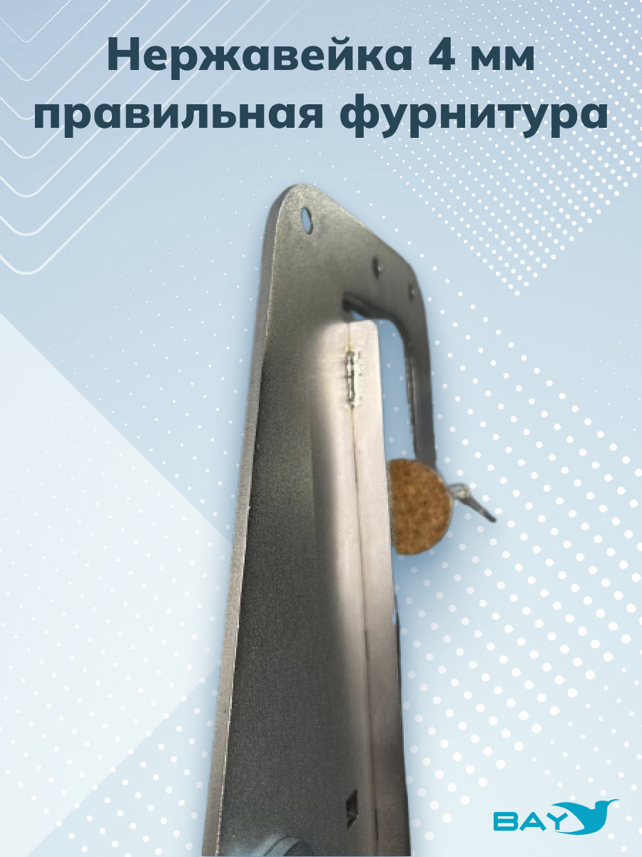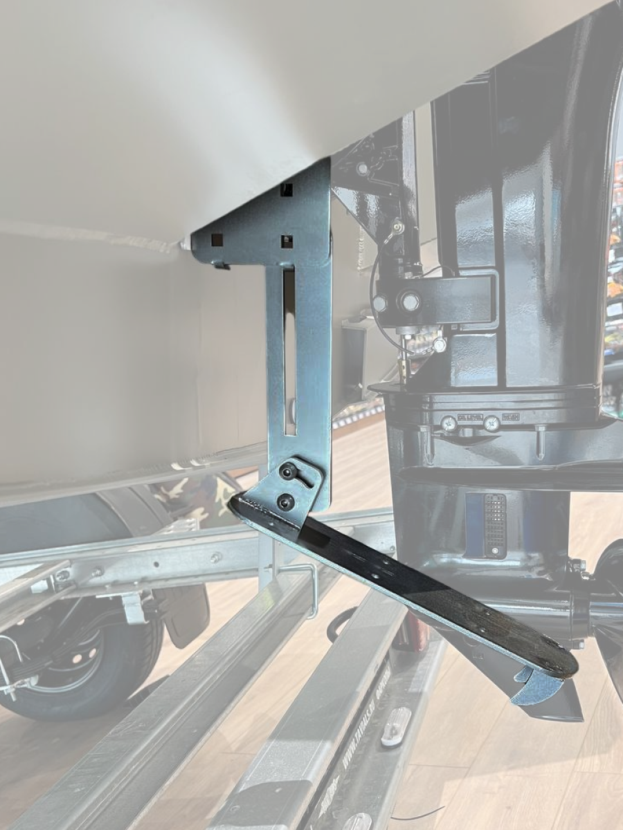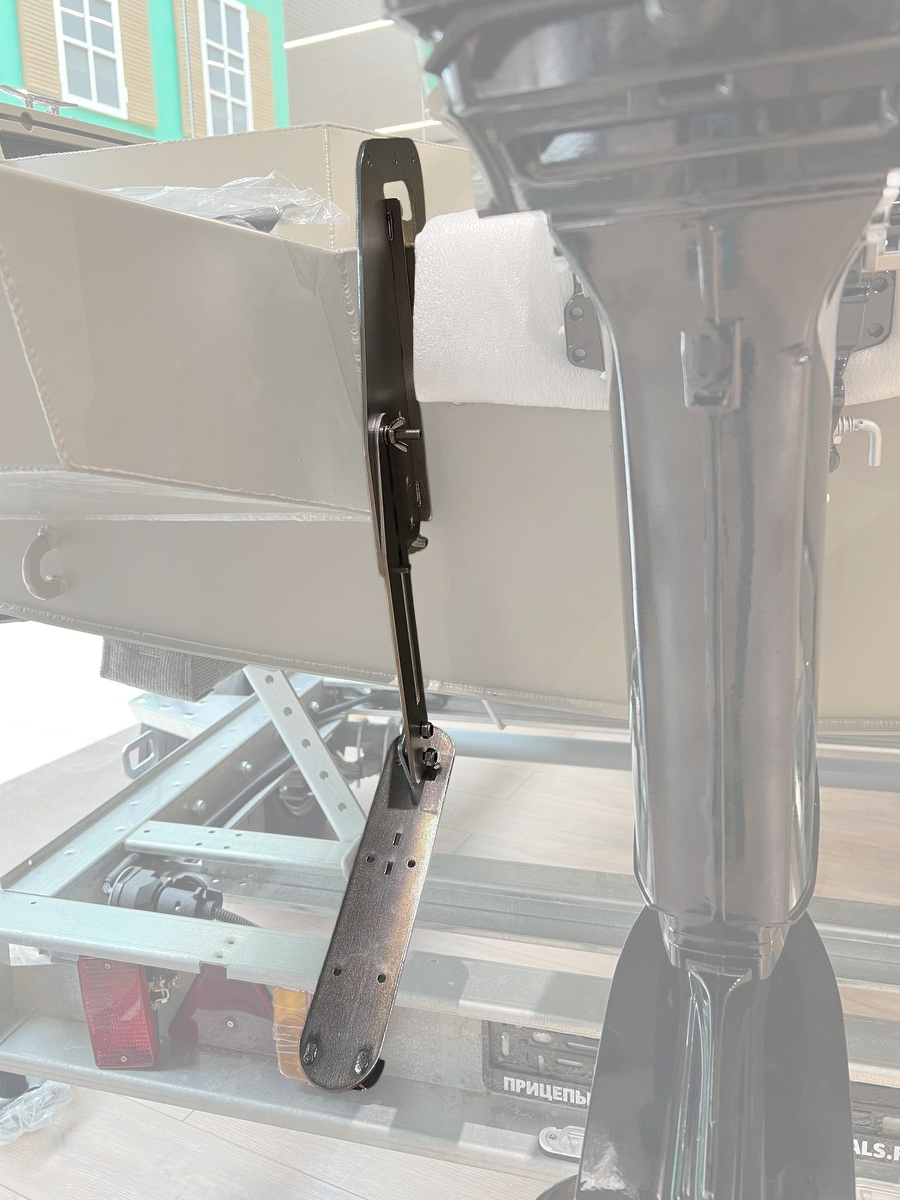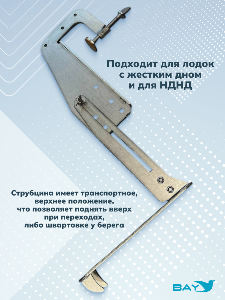 Струбцина имеет транспортное, верхнее положение, что позволяет поднять вверх при переходах, либо швартовке у берега.