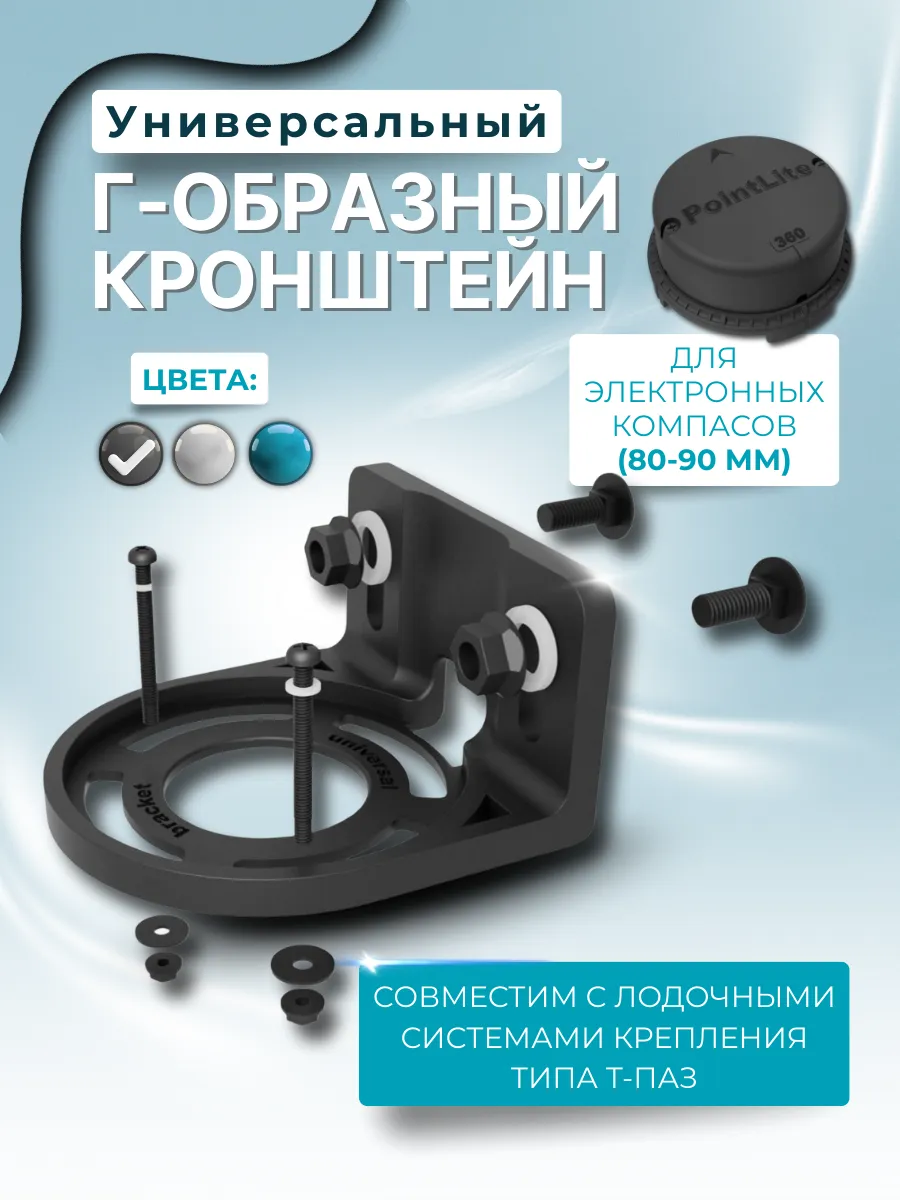 Кронштейн универсальный Г-образный для компасов PointLite — это крепёжное изделие, предназначенное для установки электронных компасов PointLite на борту лодки, катера или другого маломерного судна. Он обеспечивает устойчивое положение прибора и позволяет зафиксировать компас под оптимальным углом для комфортного снятия показаний.