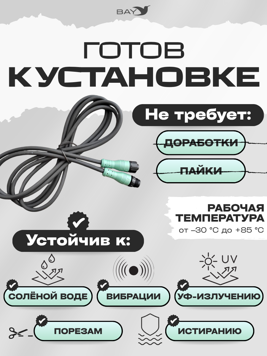 - Разъемы: 5-pin M12 (Male-Female)