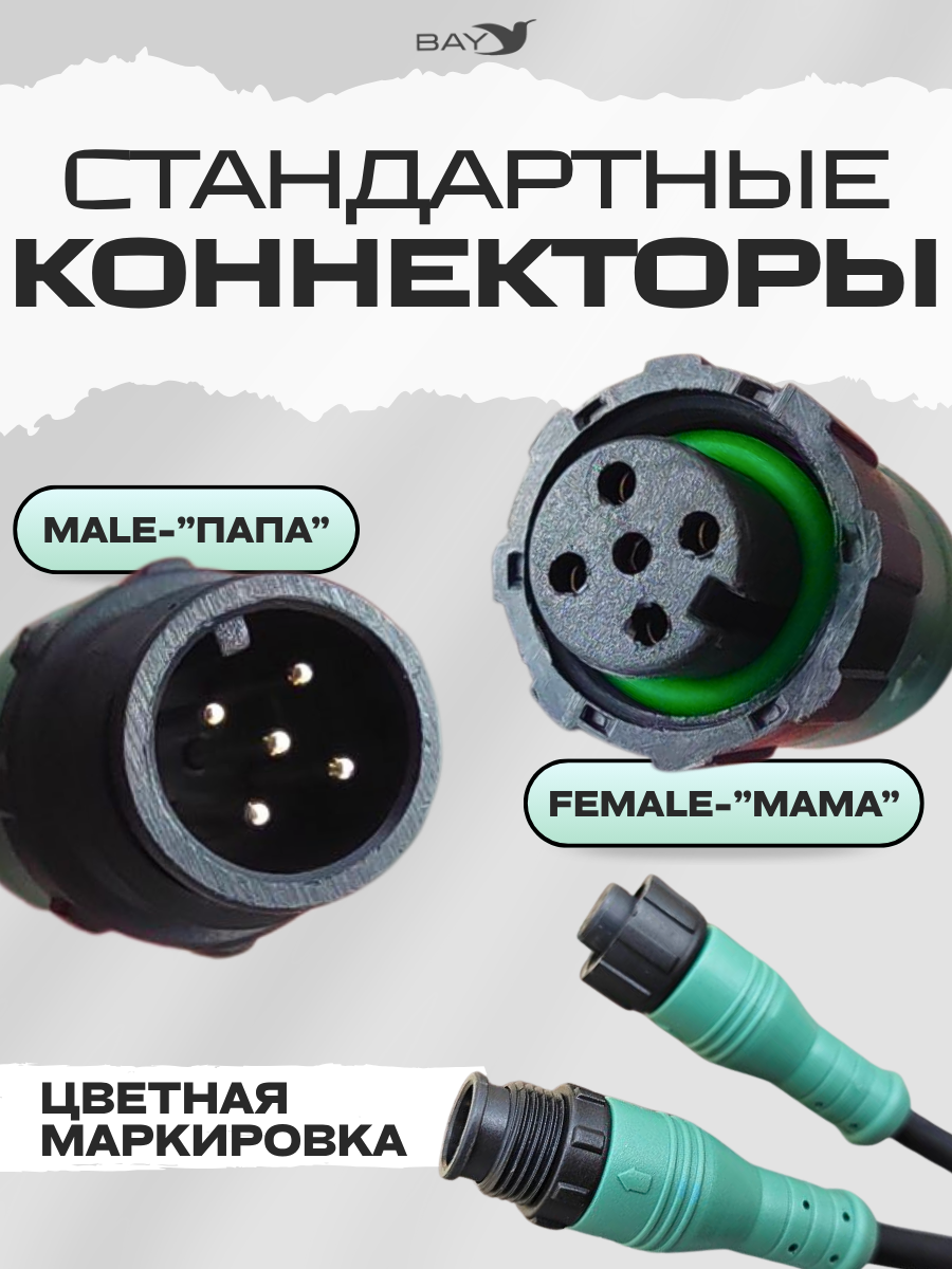 - Удобство монтажа благодаря цветным коннекторам