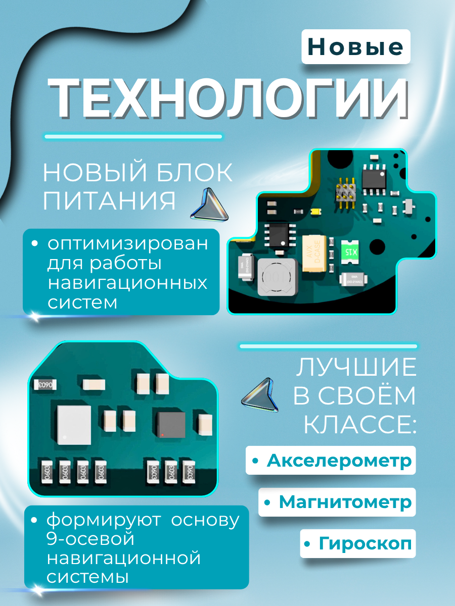 - Лучшие в своём классе магнитометр, гироскоп и акселерометр формируют основу 9-осевой навигационной системы