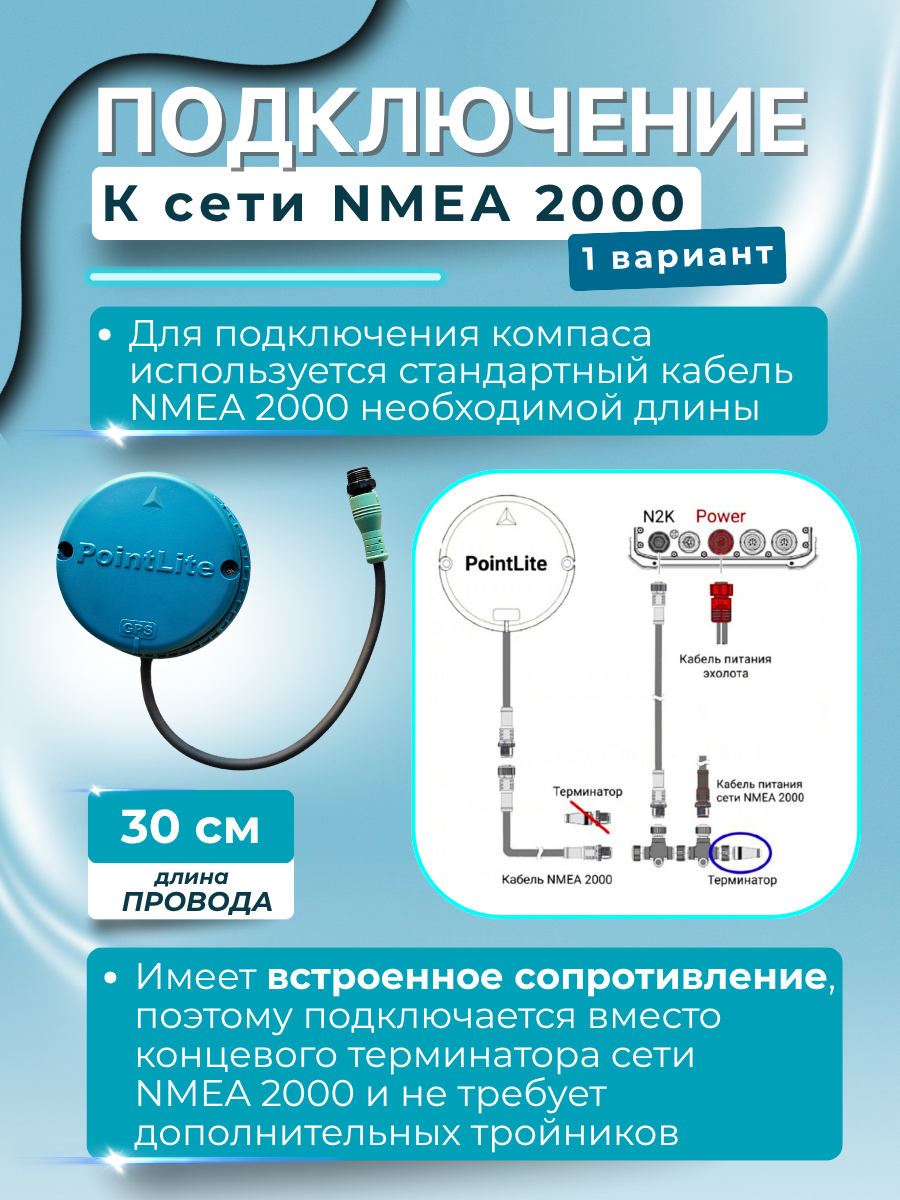 - Подключение в сеть NMEA 2000 кабелем нужной длины