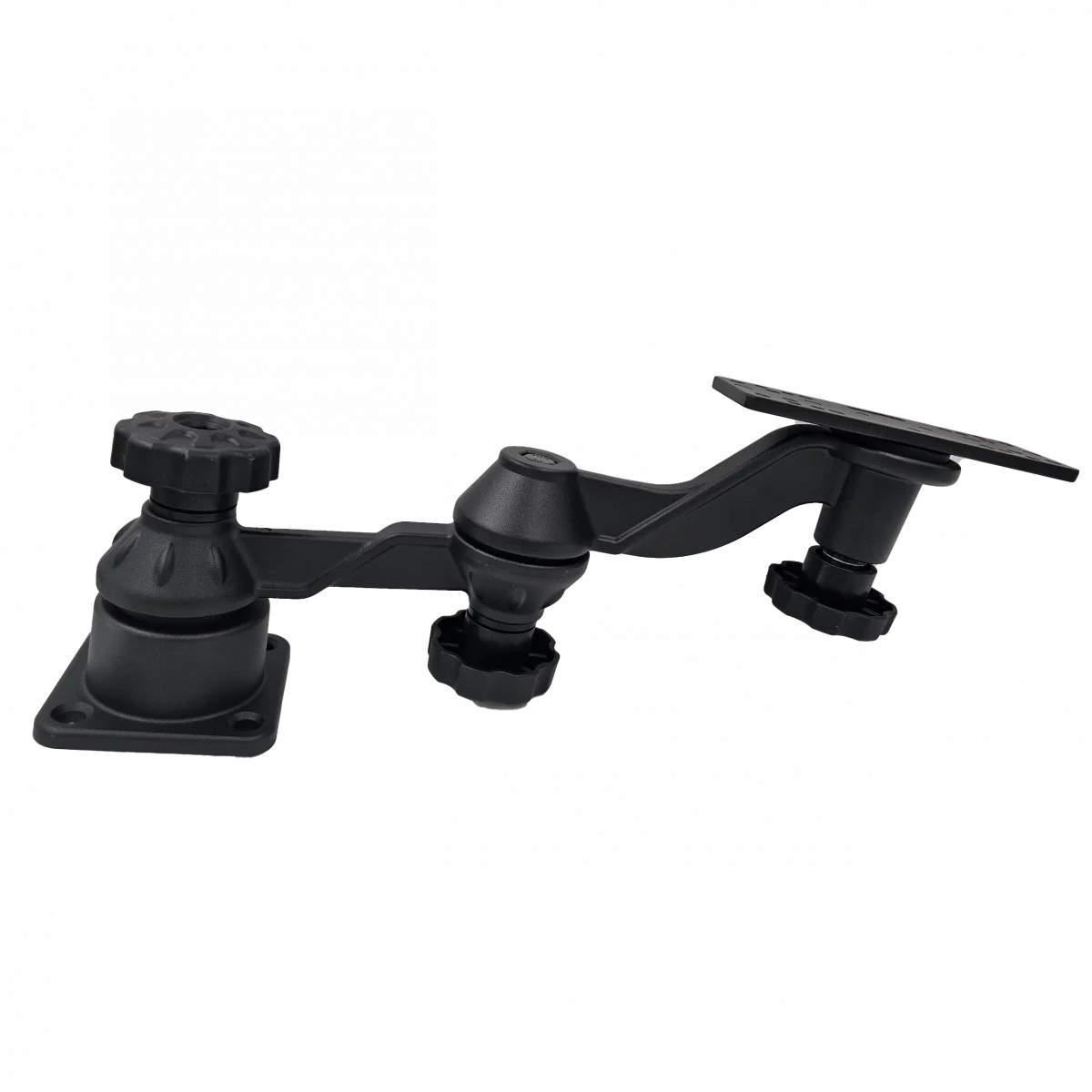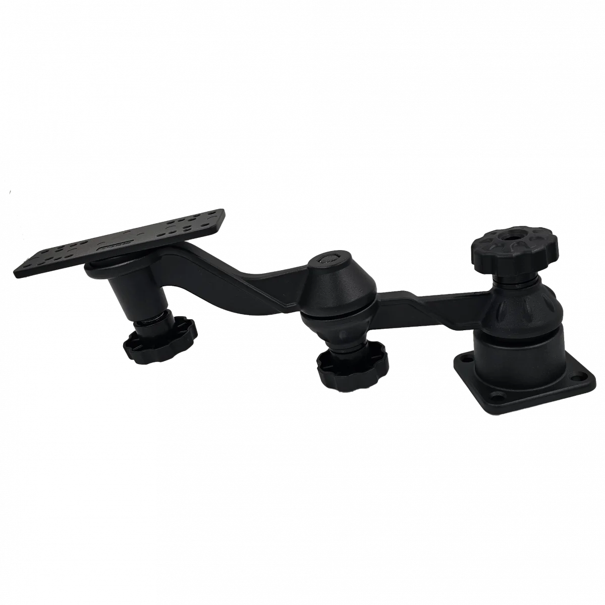 Двойное горизонтальное крепление VIN-TYQ-HB-01-L представляет собой профессиональное решение для установки эхолотов и картплоттеров. Конструкция сочетает прочность морского алюминия с универсальностью крепежной системы, обеспечивая надежную фиксацию оборудования в любых условиях эксплуатации.