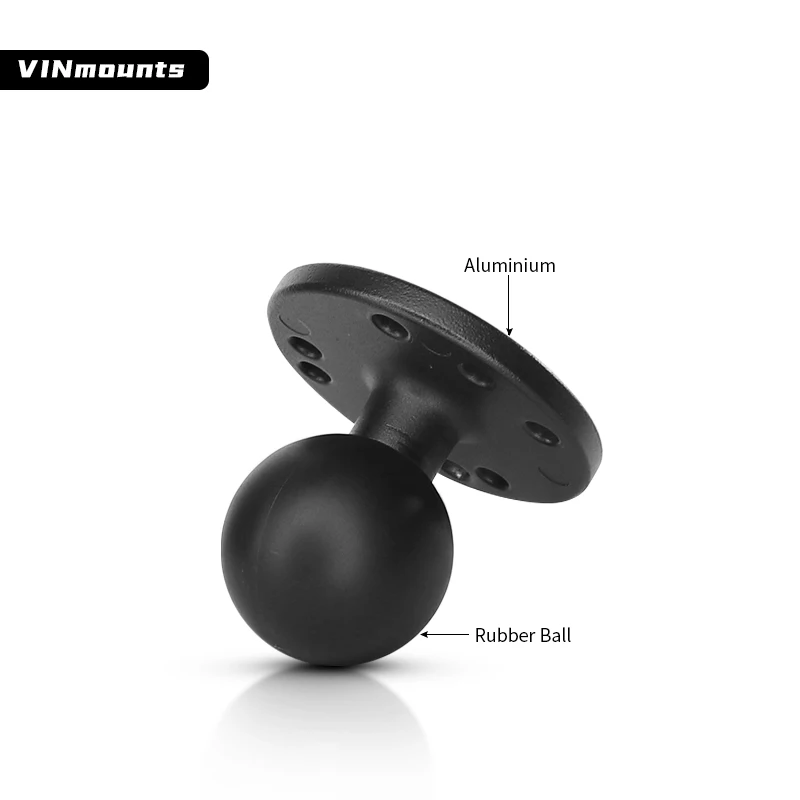 Шар VIN-C-003 представляет собой алюминиевое основание с обрезиненным крепежным шаром диаметром 1,5 дюйма (38 мм). Круглая площадка с предварительно просверленными отверстиями обеспечивает удобный монтаж на различные поверхности. Конструкция отличается прочностью и устойчивостью к коррозии благодаря порошковому покрытию.
