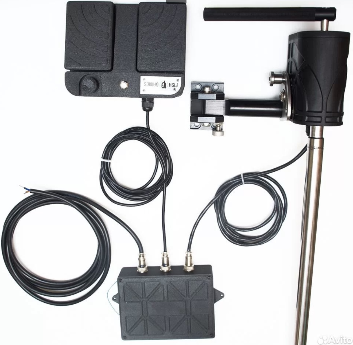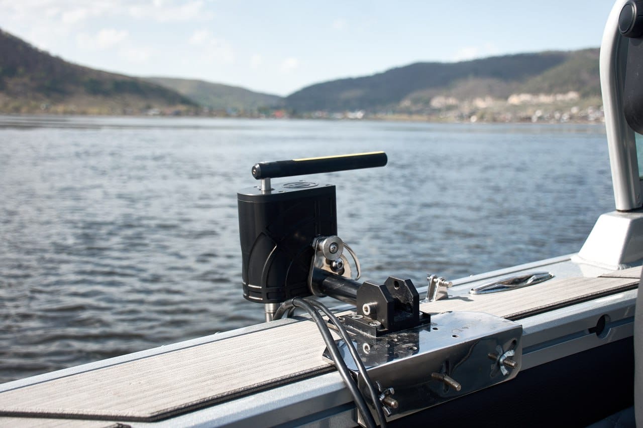 С первого взгляда бросается в глаза его компактный размер, телескопическая штанга, наличие дистанционного пульта-управления, который крепится на бланк удилища, а так же алюминиевое крепление для датчика лайвскопа.