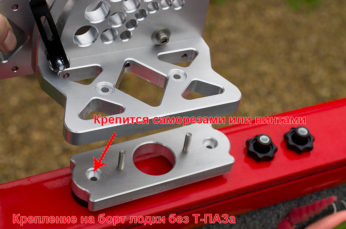 Ротатор - кронштейн ТИП1 разработан специально для установки датчиков эхолота Garmin Panoptix, Lowrance Active Target и совместимых систем, включая Mega Live. Монтируется на борт лодки без необходимости использования Т-ПАЗа, что удобно для лодок с обычным планширем.