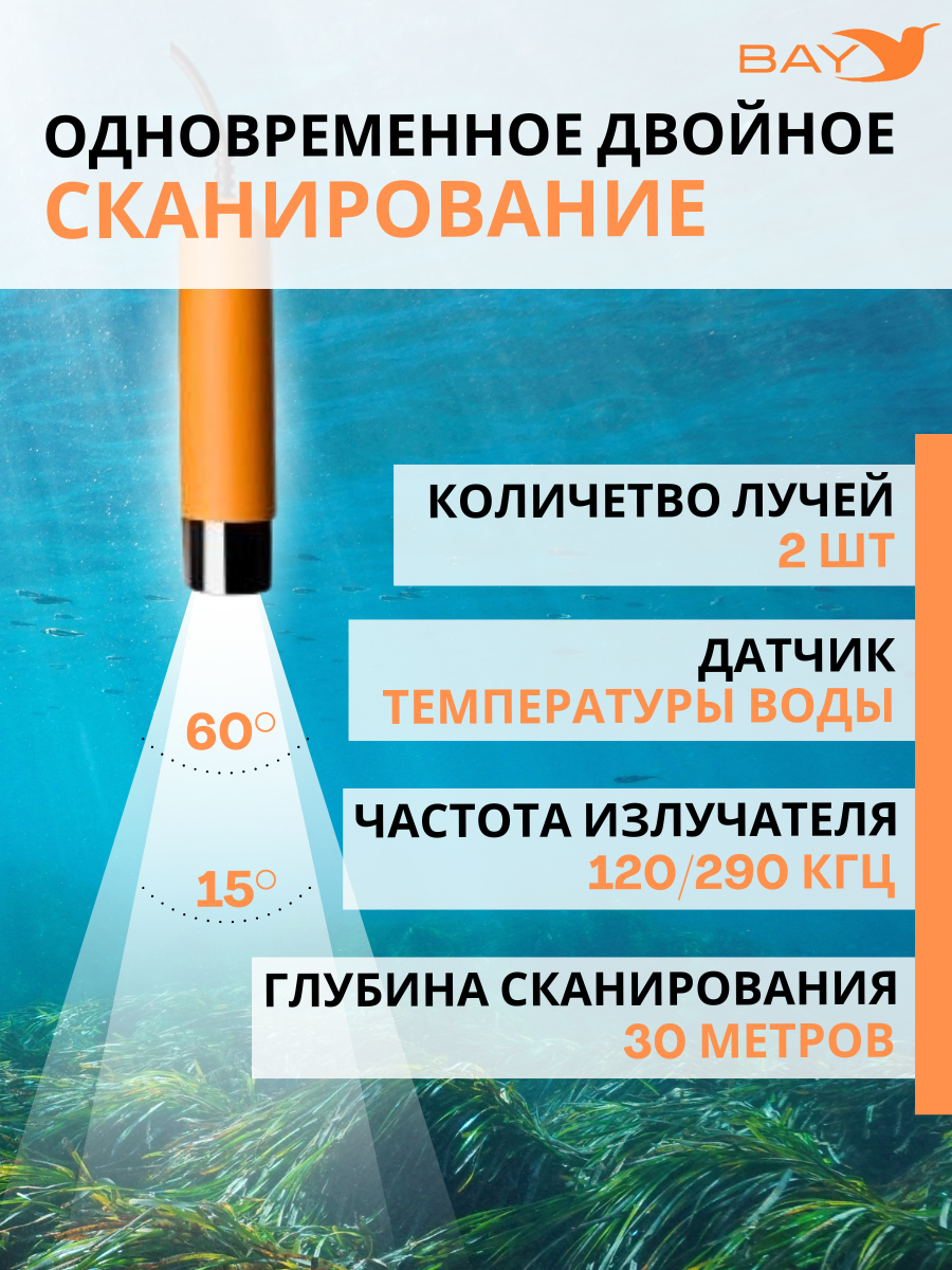 Режим, в котором эхолот проводит измерение сразу двумя лучами: узким (15°) и широким (60°). Увидите, какой рельеф под лункой, ровное дно или с перепадом.